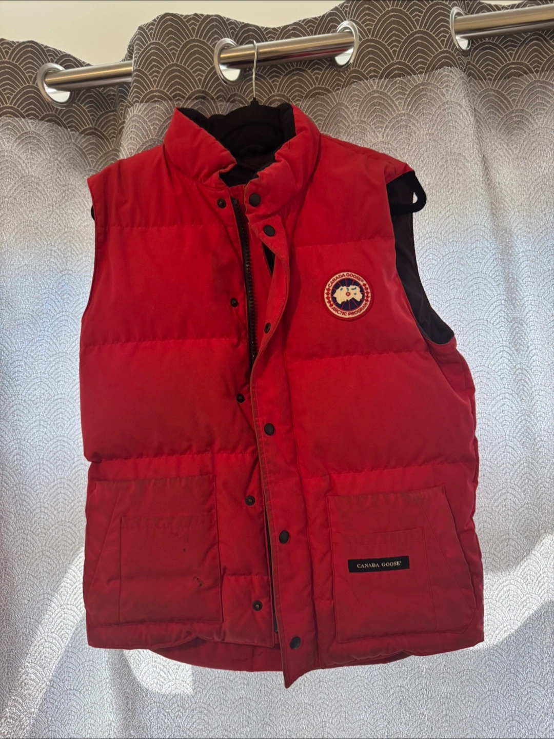 Selling a Canada Goose puffer vest in red. It's in great condition and perfect for layering during the cooler months. The size is small.