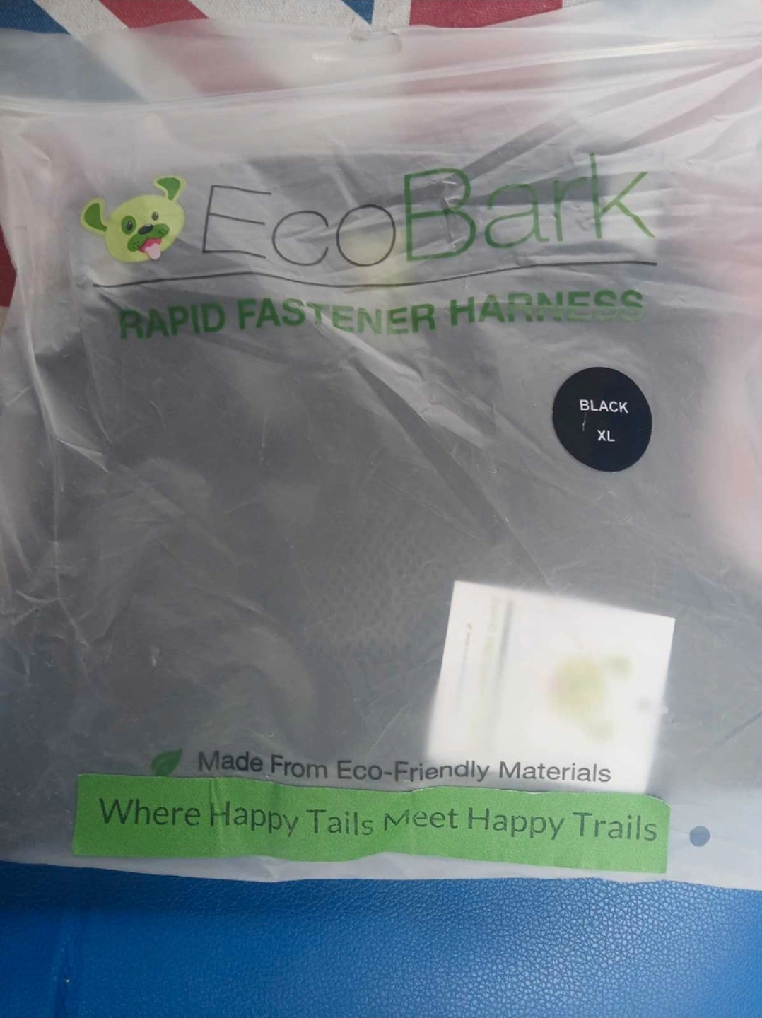 I'm selling an EcoBark Rapid Fastener Harness in black, size XL. It's made from eco-friendly materials, so it's a great choice if you're looking for a sustainable option for your furry friend. The harness is breathable and features a no-choke design, and it's non-breakable. EcoBark strives to measure their carbon footprint by incorporating plastic bottles into their products
