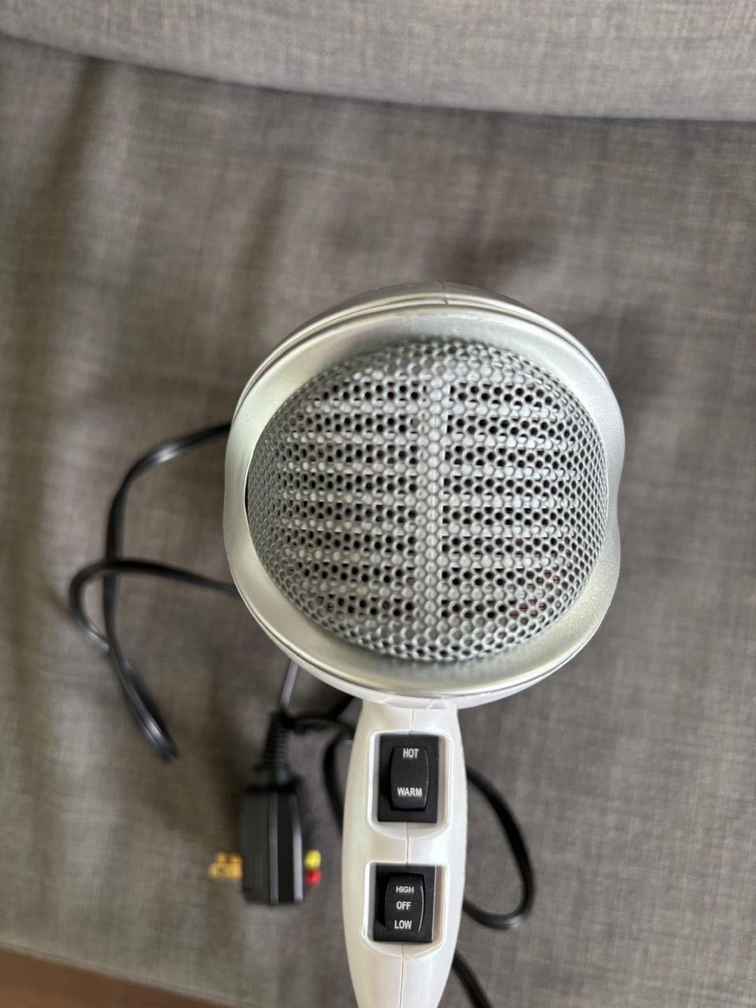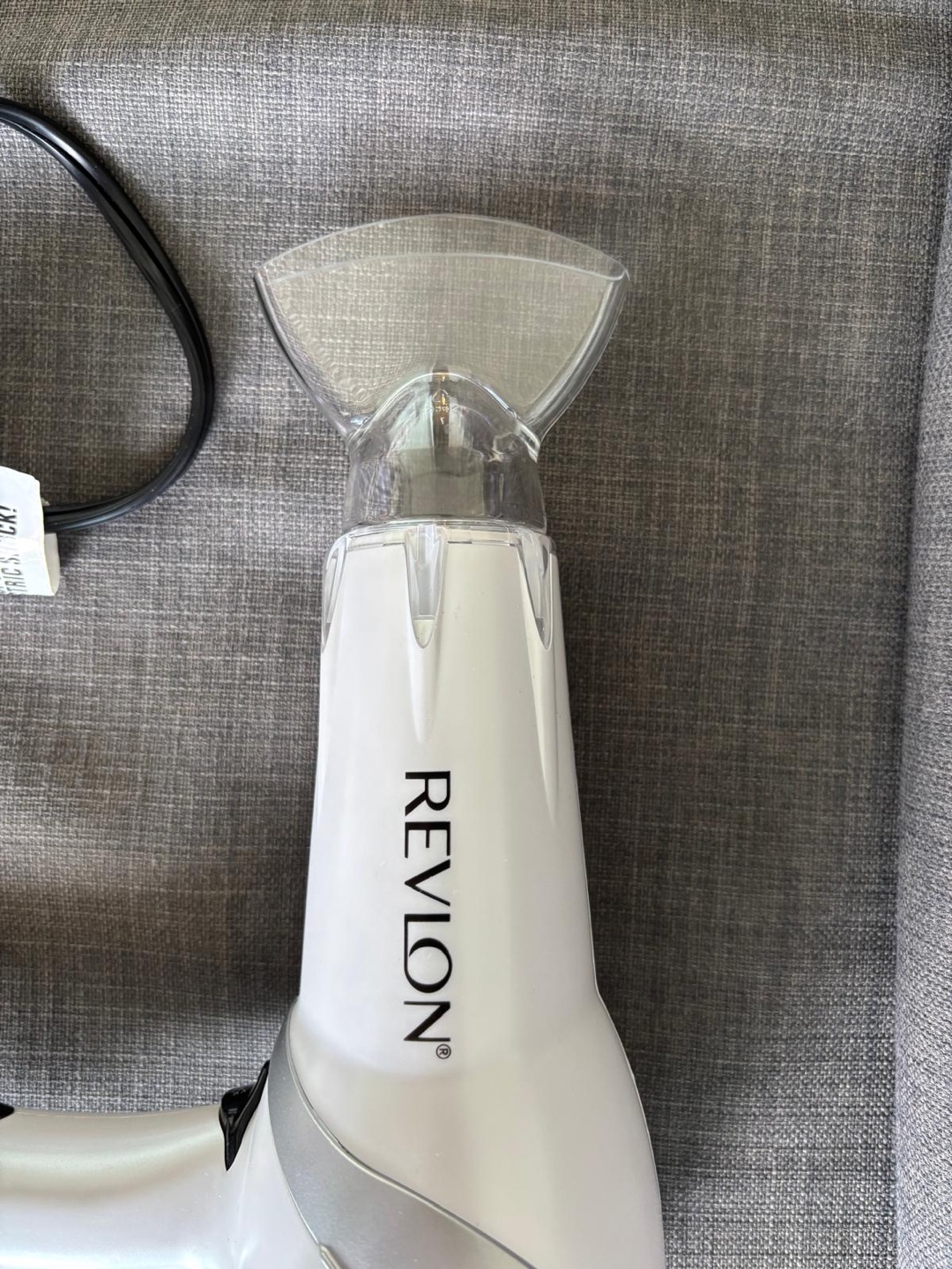 Selling a Revlon hair dryer in white. It has different heat and speed settings, so you can customize it to your hair type. It also comes with a concentrator attachment for more precise styling - barely used!