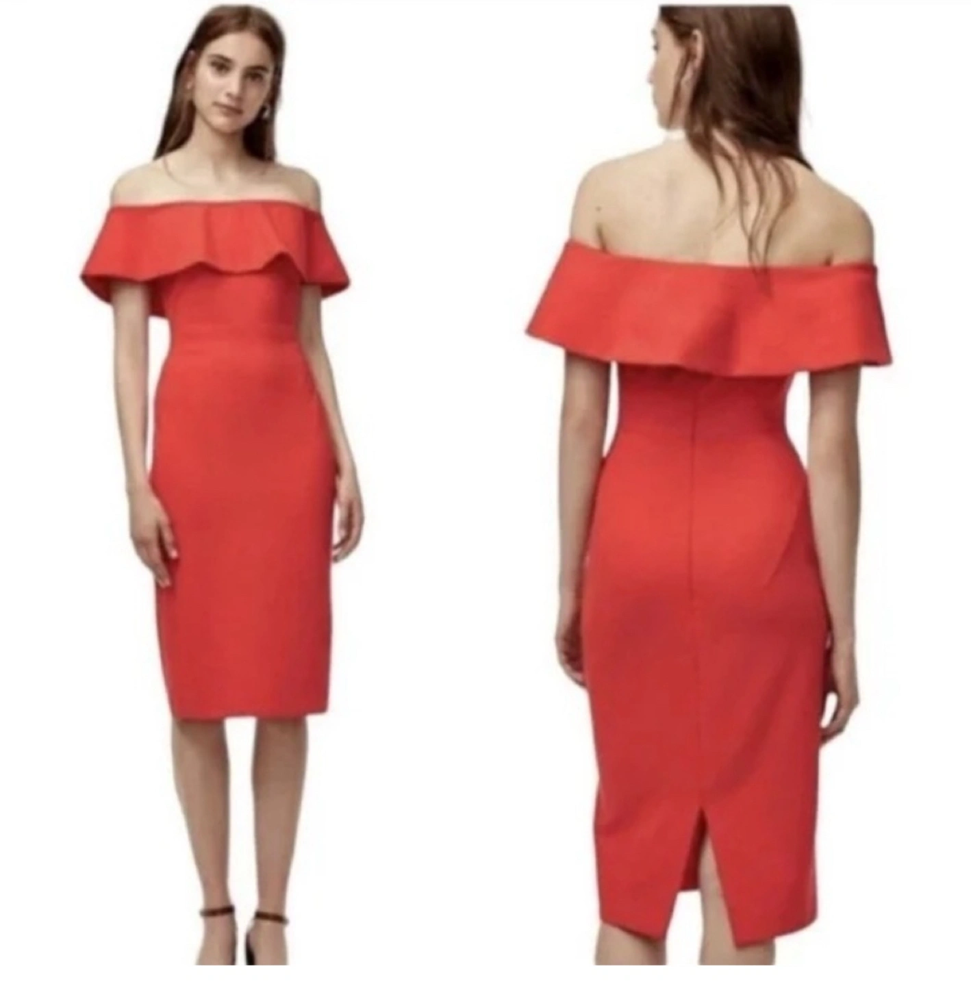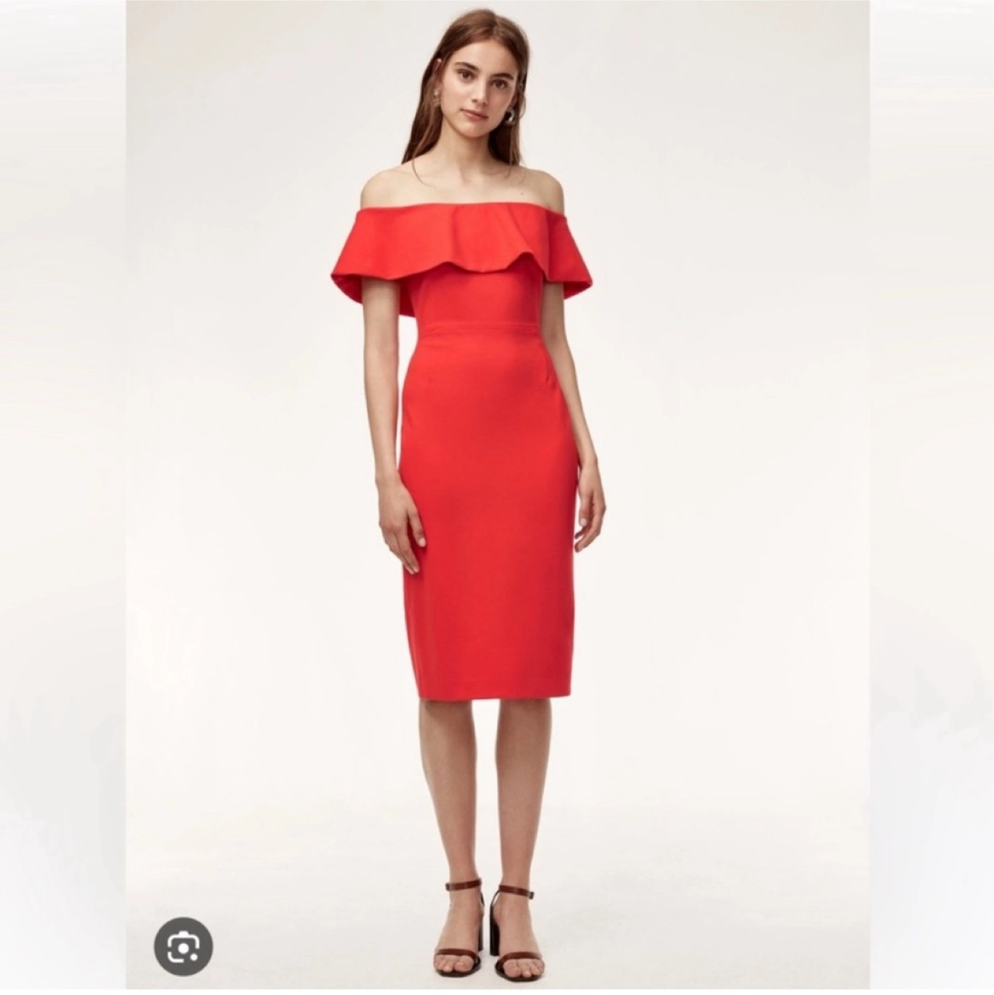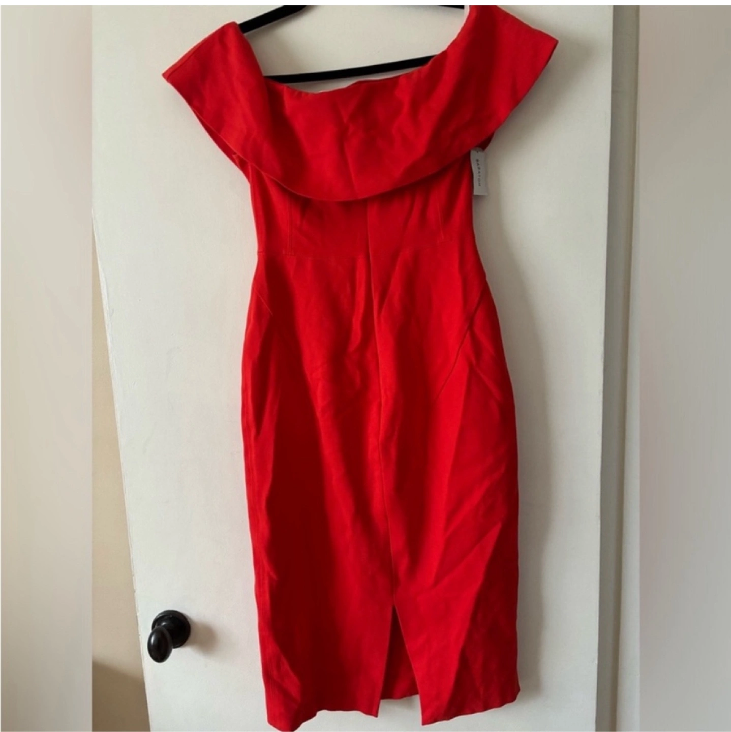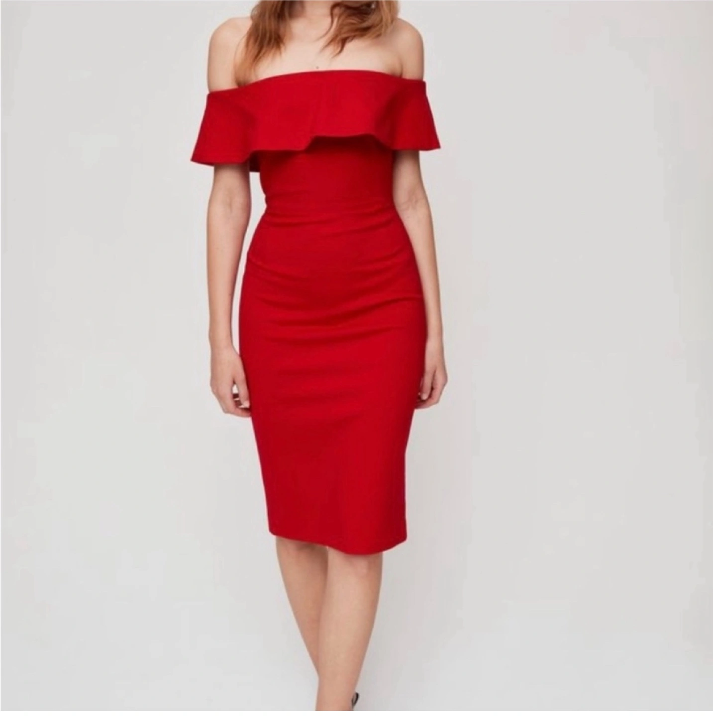 Selling a beautiful red off-the-shoulder dress from Babaton! It's a size 8 and in great condition. Perfect for a night out or a special occasion. The dress has a flattering silhouette and a stylish design.