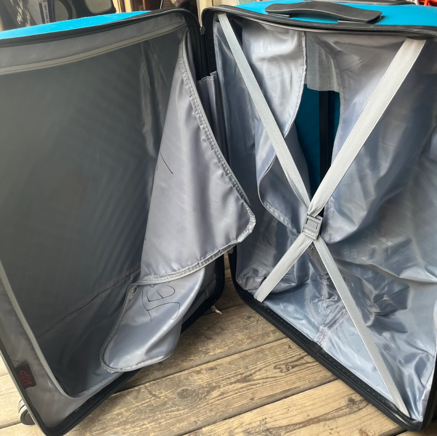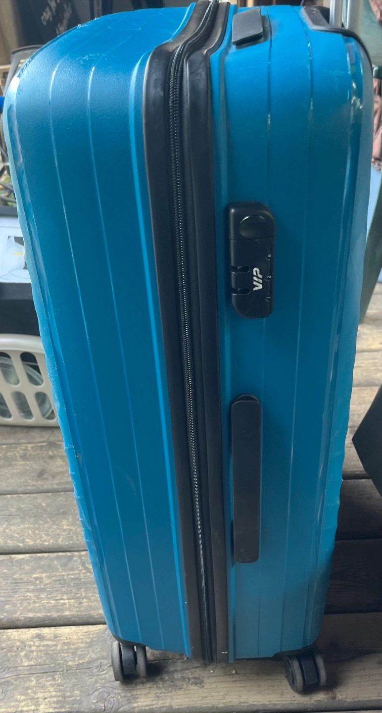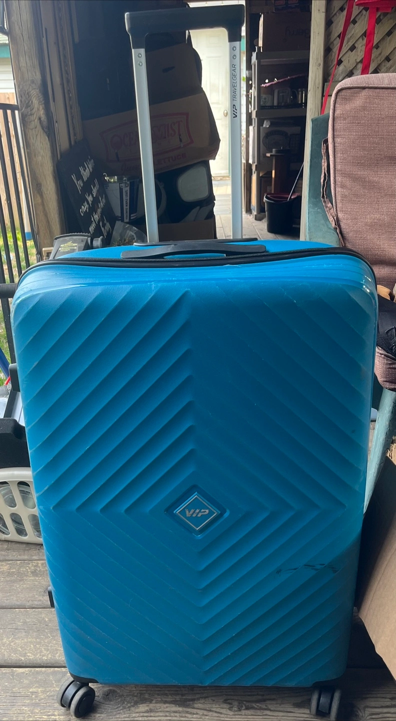58Selling a VIP Travelergear 16 luggage in a vibrant blue! It's a great size for travel and features a unique geometric design. The size is Large. Originally bought for RS 4410.00