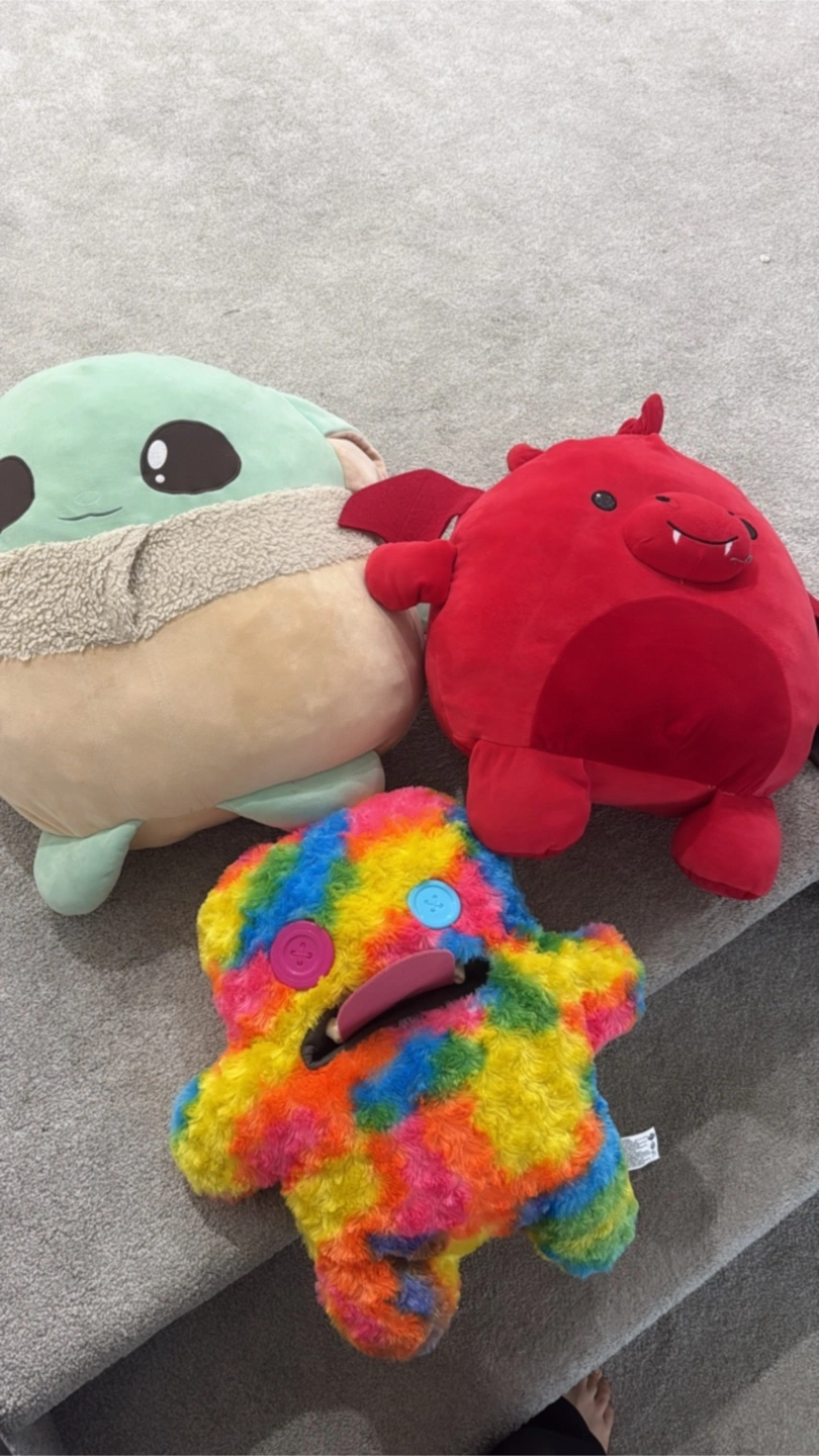 Selling a collection of cute Squishmallows plushies! There's a Grogu (Baby Yoda), a red dragon, and a colourful rainbow monster plush available! They're all in great condition and ready for a new home 10 doller each