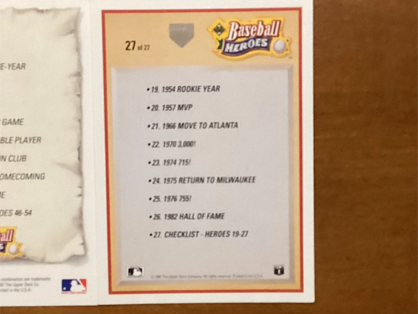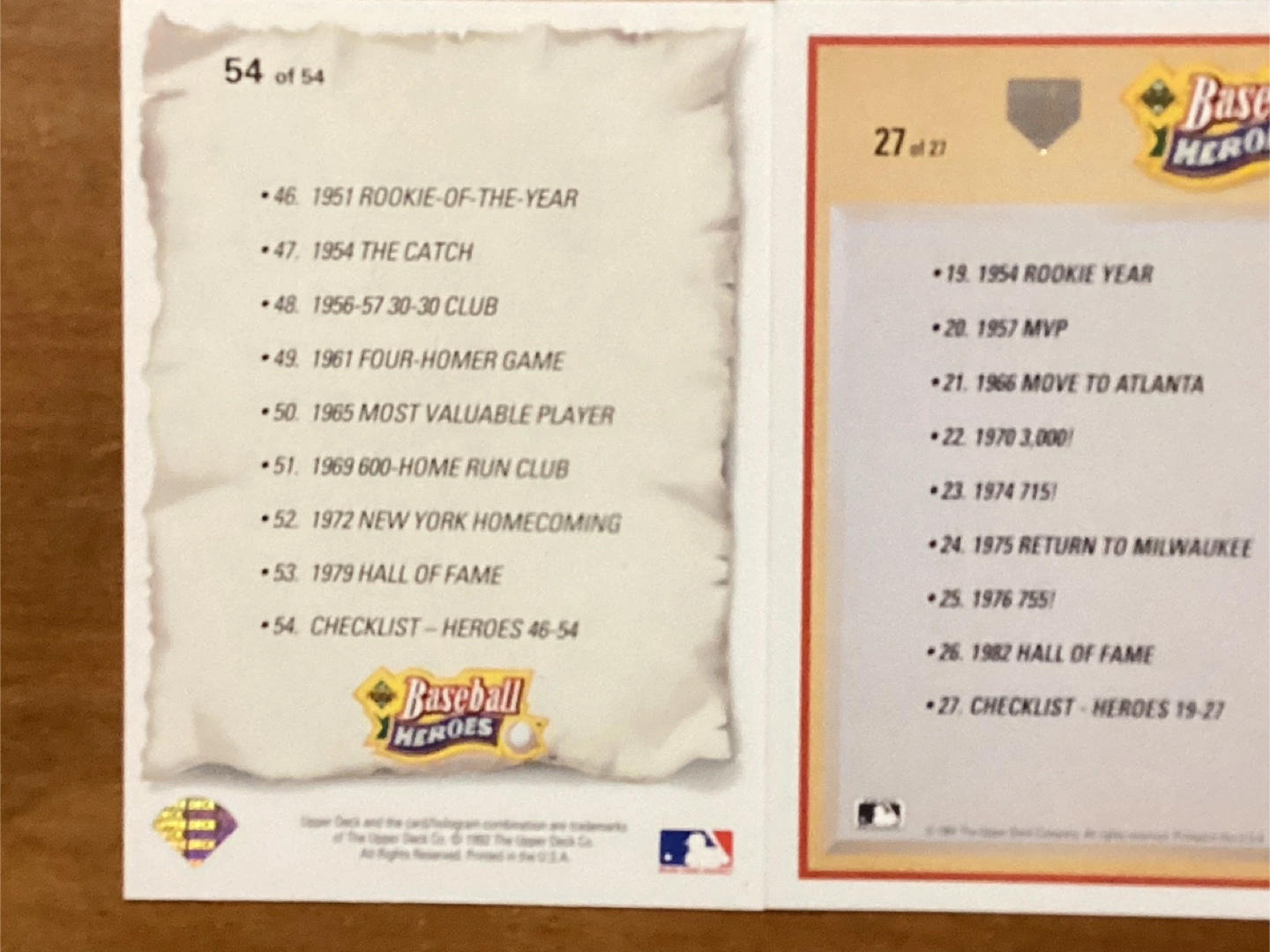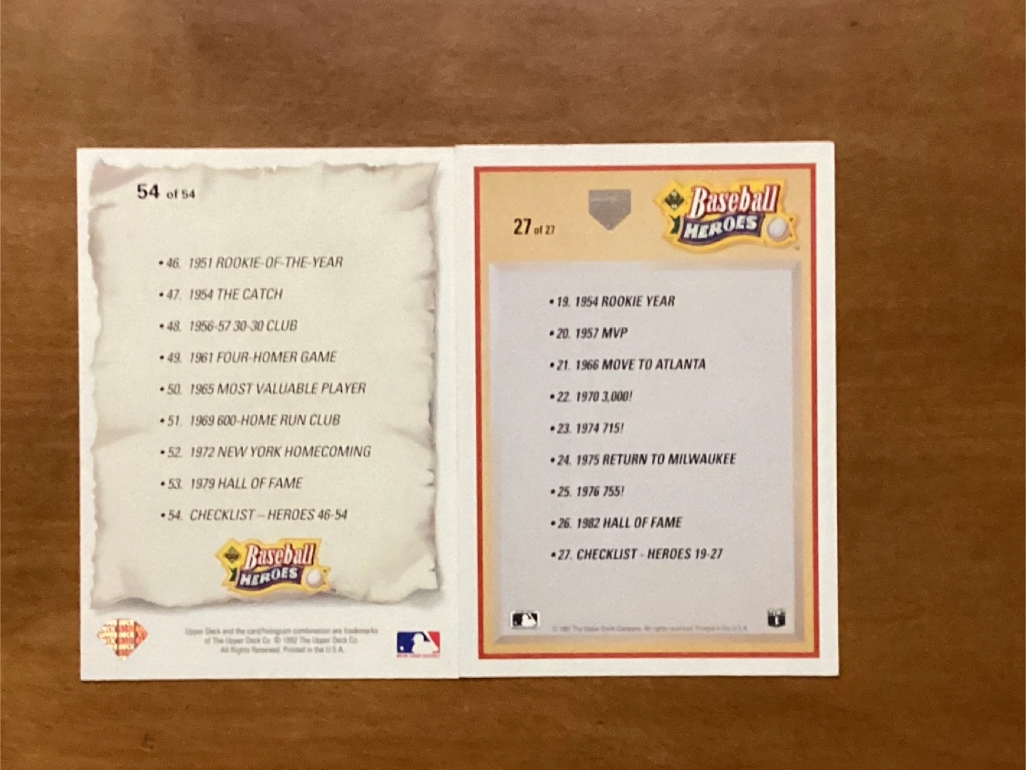 1993 WILLIE MAYES Card 54 & 1991 HANK AARON Card 27