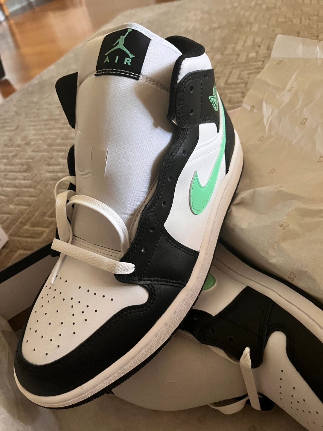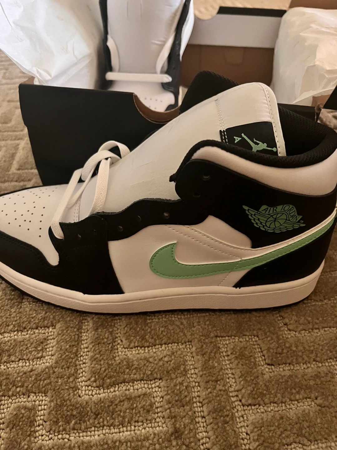 Selling a pair of Nike Air Jordan 1 Mid SE in the "Ice Blue" colorway! These are NEW and come with the original box. The shoes feature a stylish black and white design with ice blue accents, making them a standout addition to any sneaker collection