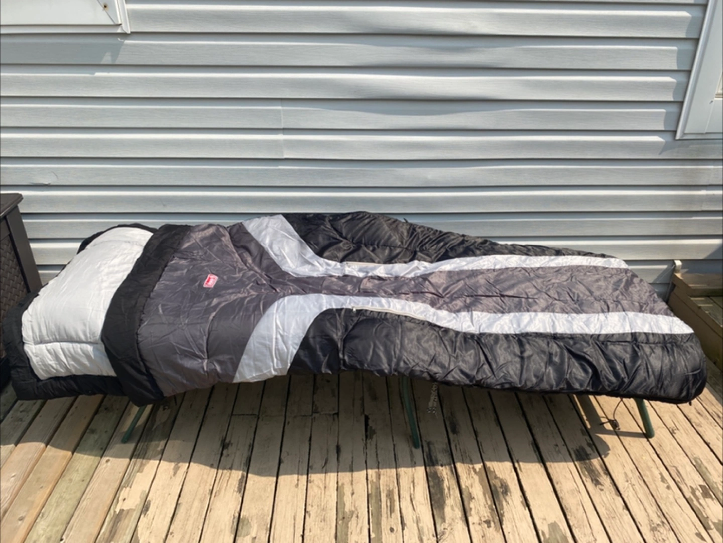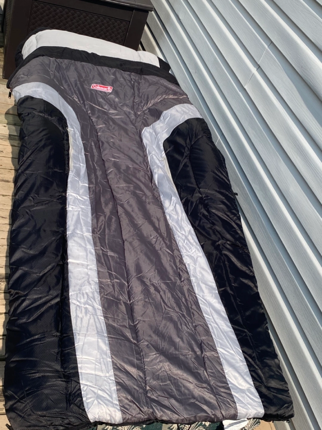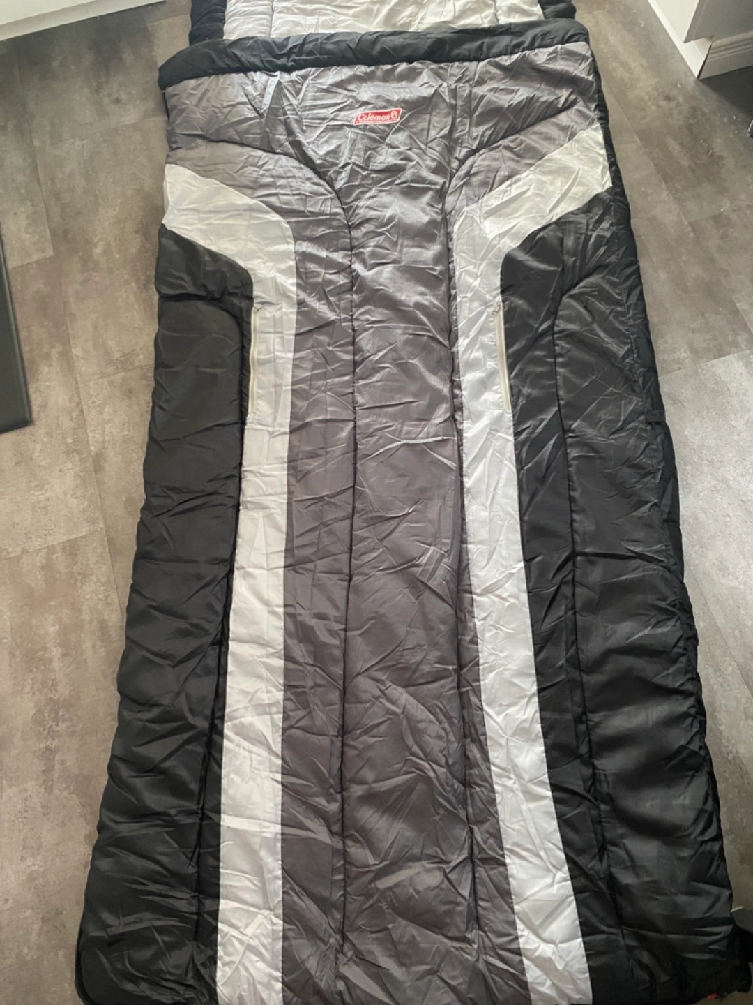 Selling an Adult Coleman sleeping bag in great condition! It's perfect for camping or sleepovers. It has black, grey, and silver colours. Has 2 side zippers to store valuables. Everything works, no rips. Used once inside a cottage. Cash and pick up only, Cawthra and Lakeshore area in Mississauga.