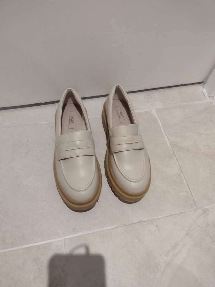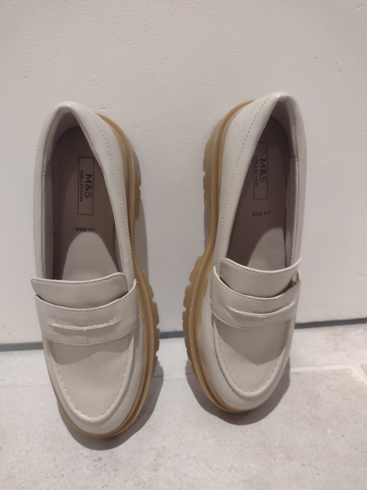 Selling a pair of Marks & Spencer M&S Collection white wide fit loafers. They're a size 9 and in great condition! Worn once but weren't the right fit for me. Open to trades