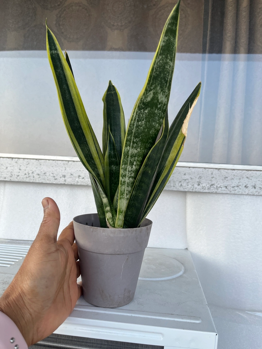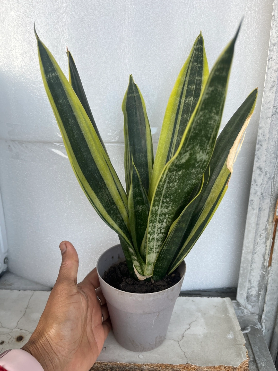 Selling a healthy sansevieria plant! It's in a grey pot and would look great in any room. Easy to care for and adds a touch of greenery to your space