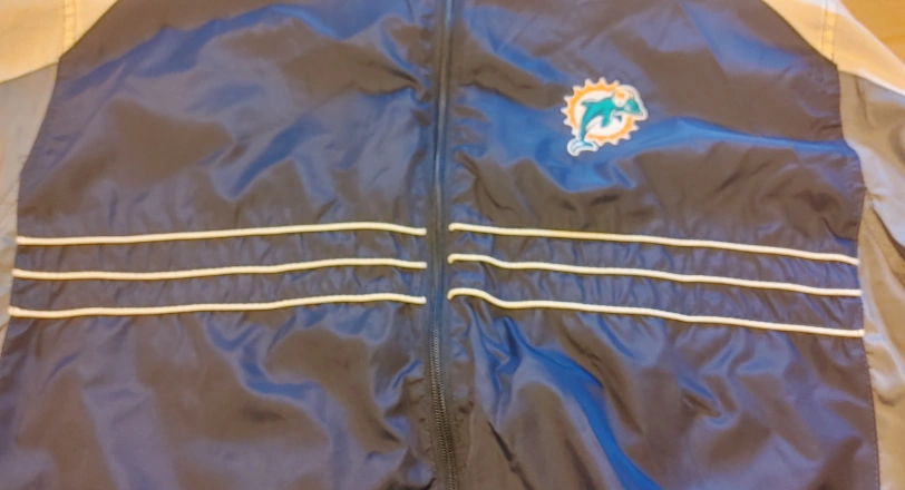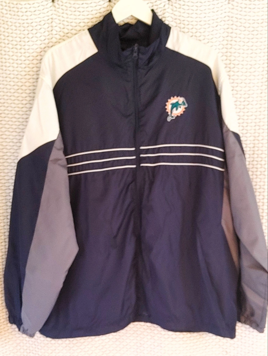 Men's vintage Reebok NFL Miami Dolphins Sports illustrated zip up jacket. It is a size XL and features the team logo. Very good condition. 2 front hand pockets and zipper in perfect working order. No rips or stains. Smoke free home pick up Mt.Brydges cash only.