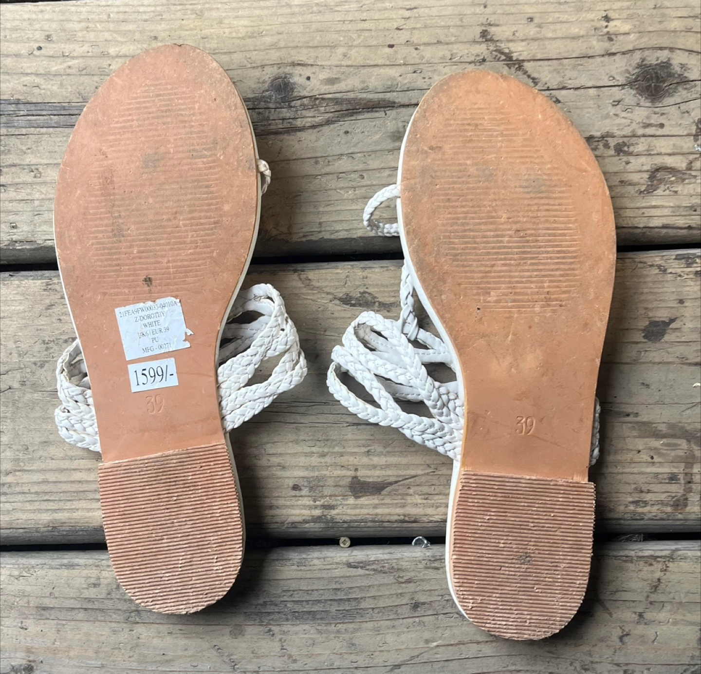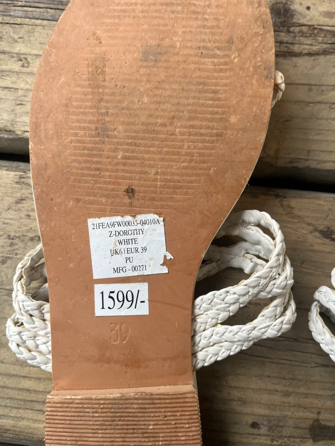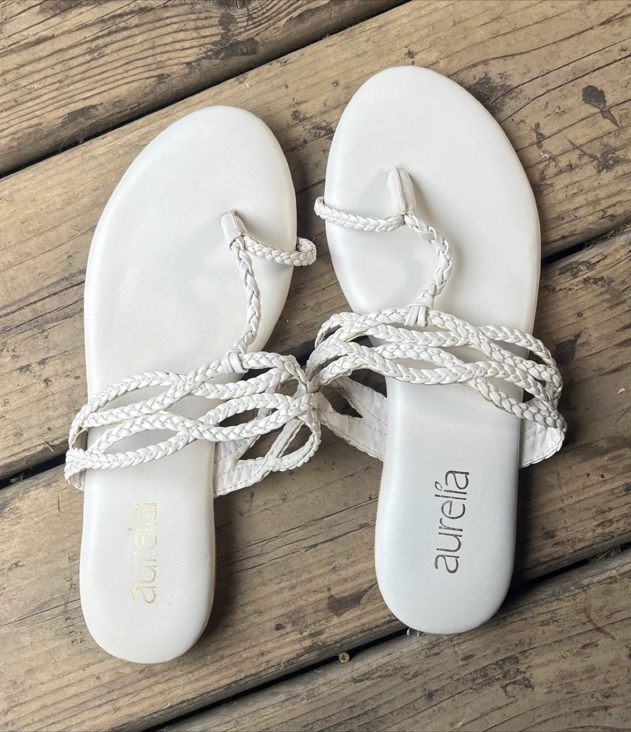 58Selling a pair of Aurelia white braided sandals. They are size 9 (EU 39) and in great condition! Perfect for summer. The material is PU.