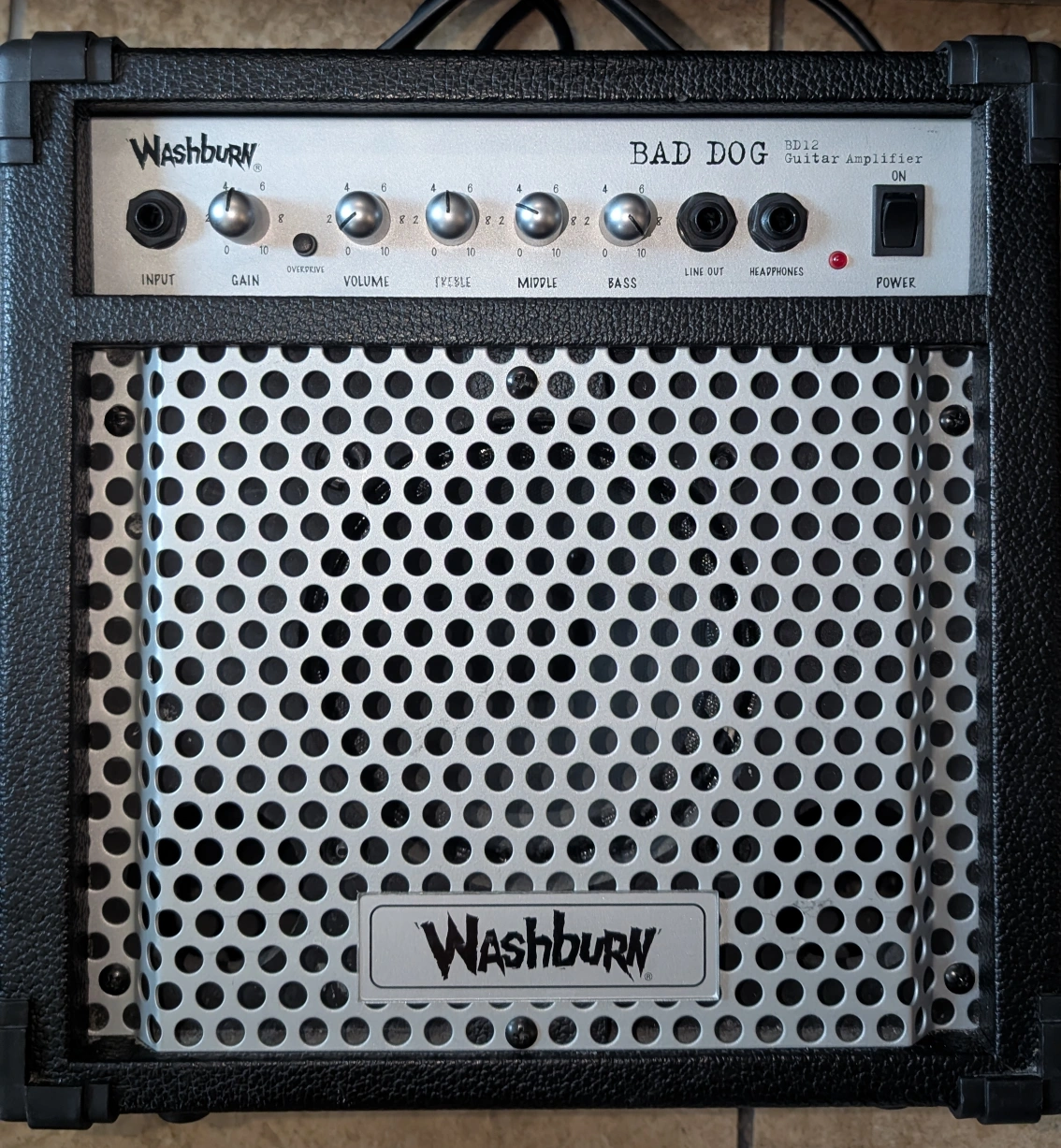 Selling a Washburn Bad Dog BD12 guitar amplifier. It's in great shape and ready to rock! Features include gain, volume, treble, middle, and bass controls, as well as line out and headphone jacks. Perfect for practice or small gigs