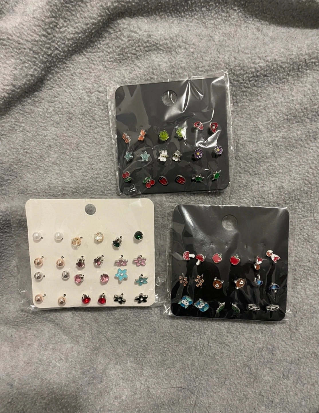 Brand new stud earring sets! Each set has a variety of cute and colourful designs. Perfect for adding a little fun to your everyday look