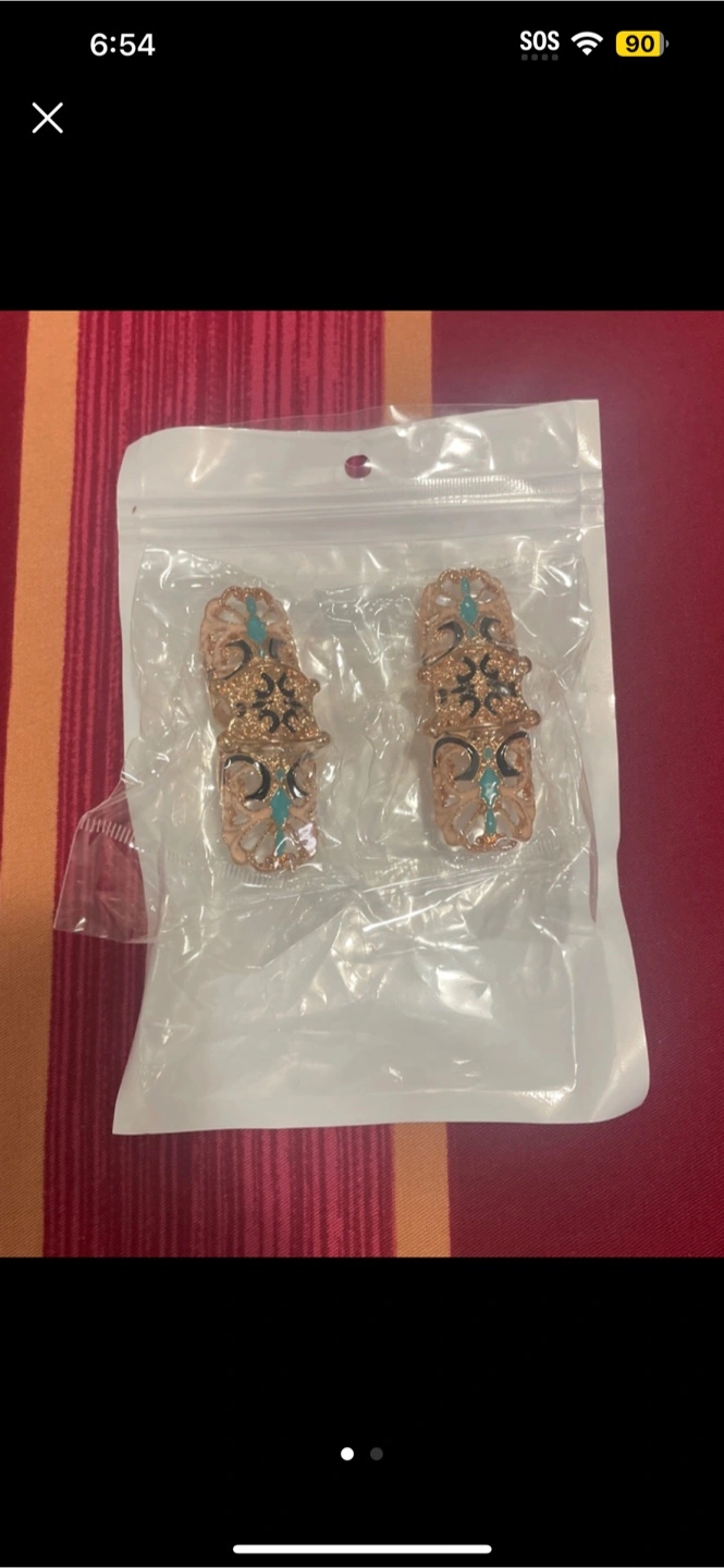 Selling a set of decorative rings. They feature a gold filigree design with turquoise accents. Perfect for adding a unique touch to your style!