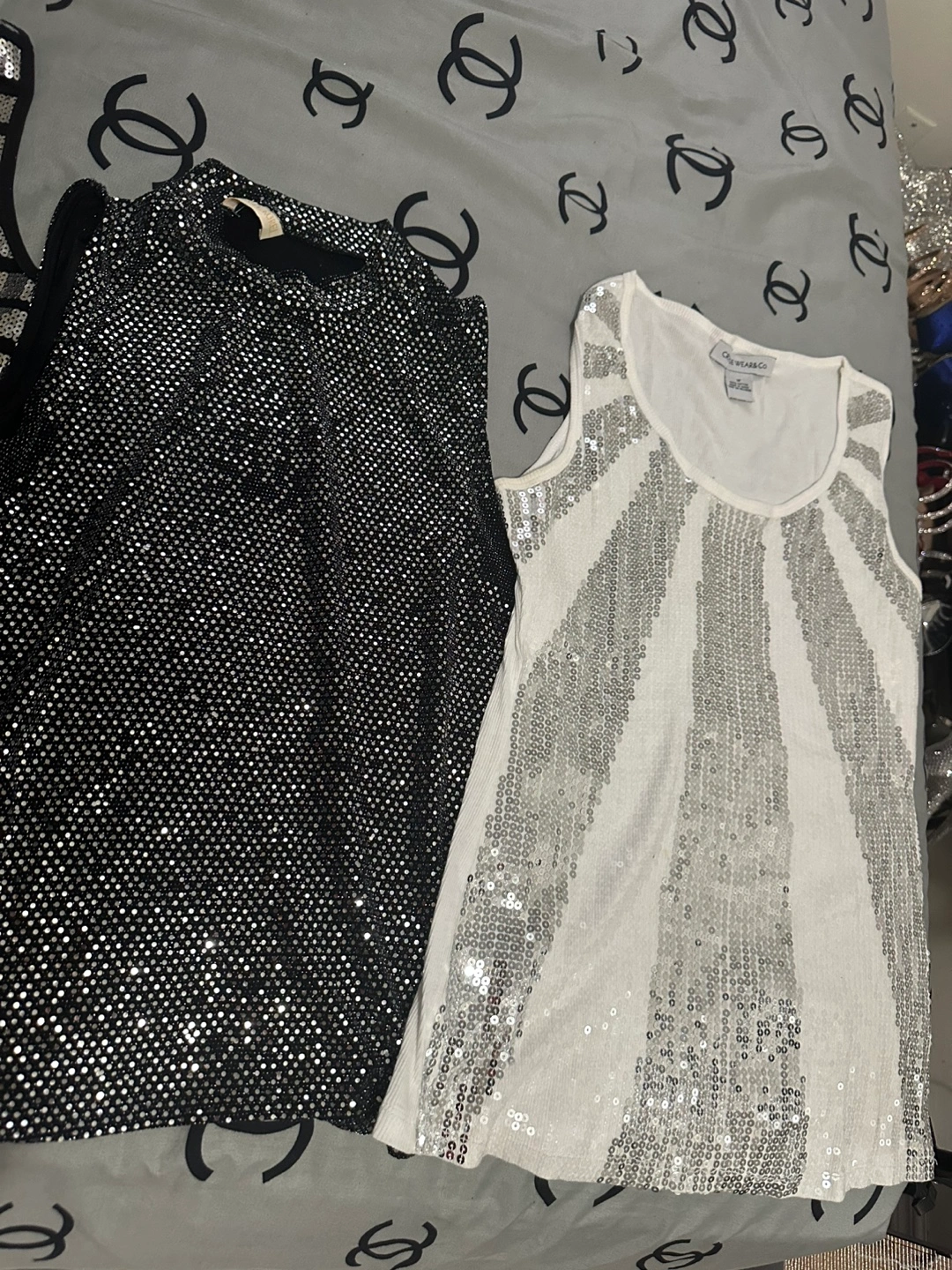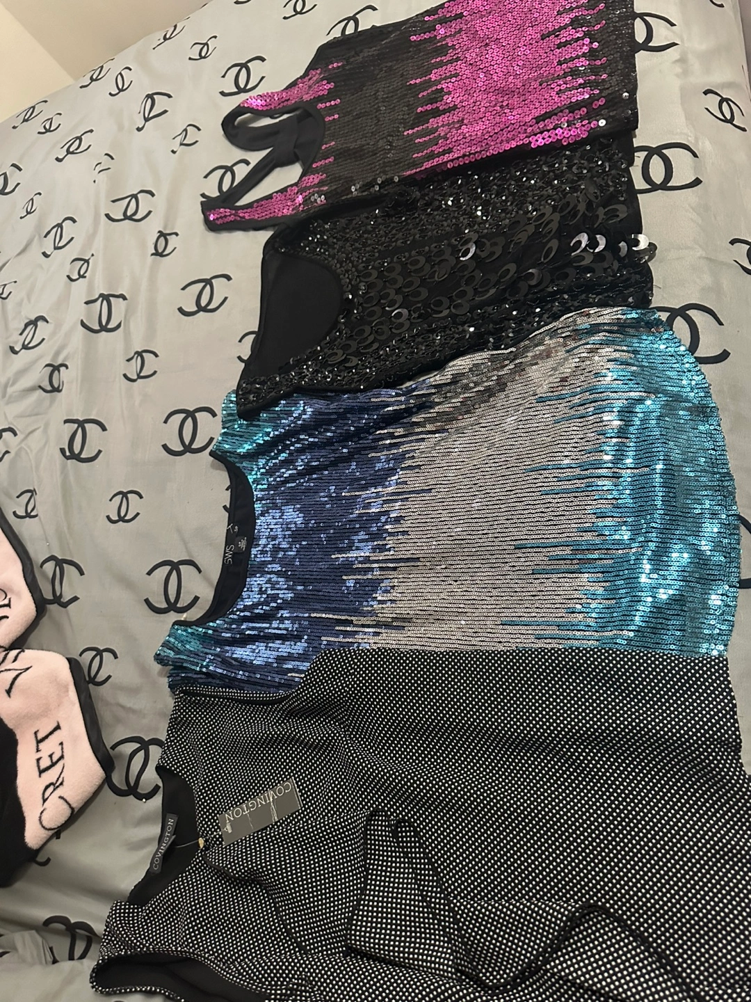83A collection of sequin tank tops in various colours and patterns each one for $10 Perfect for a night out or adding some sparkle to your party 🎉