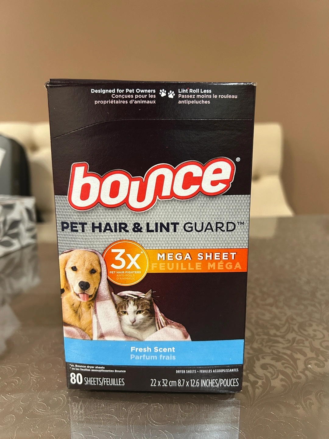 I'm selling a box of Bounce Pet Hair & Lint Guard Mega Sheets.