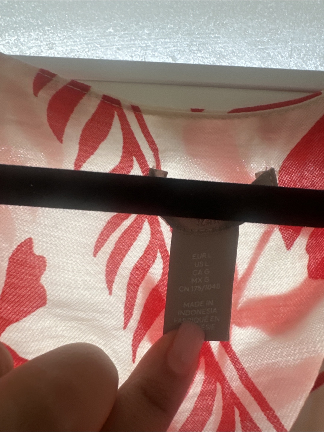 Giving away a cute H&M dress with a red and white leaf print! It's a size L and in great condition. Perfect for summer days or a casual outing