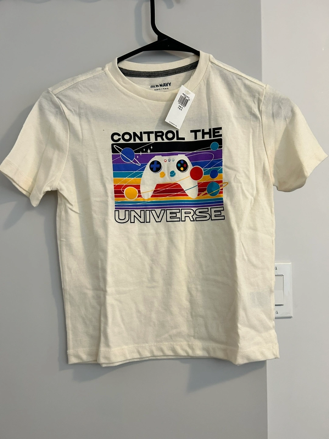 This is a new Old Navy kids t-shirt! It's a size small (6-7) and features a fun graphic design. A comfortable t-shirt can make relaxing feel even better.
