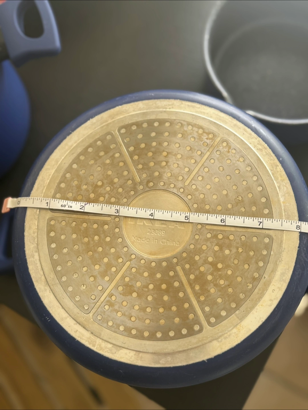 Selling an IKEA 3 pot set in blue! The larger pot is approximately 8 inches in diameter.