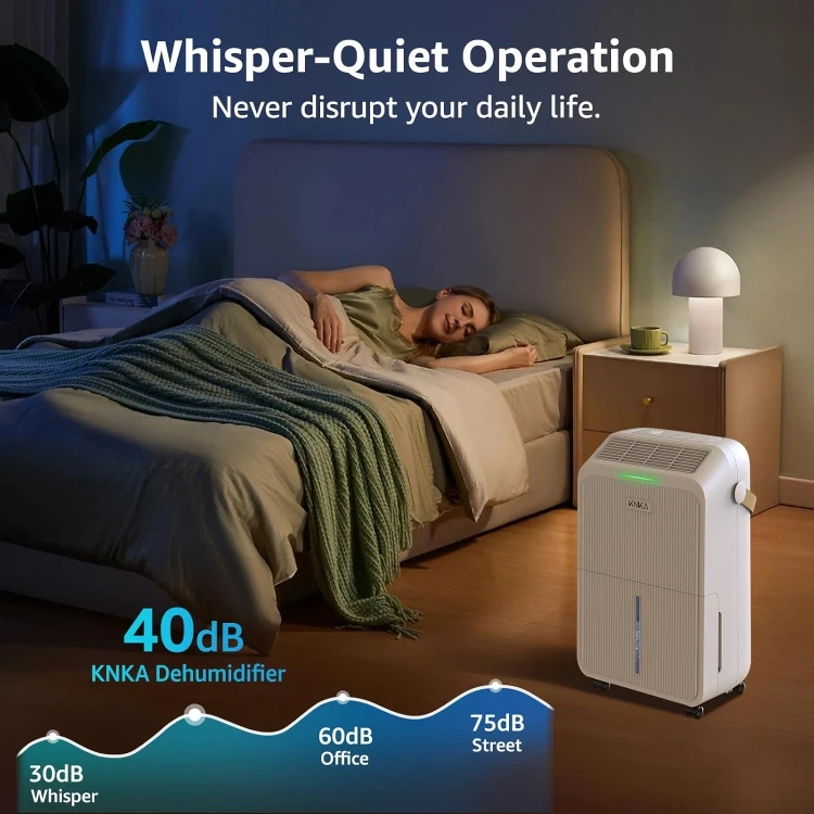 Selling a KNKA 34 Pint Home Dehumidifier. It's in excellent condition and ready to go to a new home! Key features: - Coverage area up to 2500 sq.ft. - Adjustable humidity from 30-80% RH - Whisper-quiet operation at 40dB - Built-in 3L tank - Includes a gravity drain hose (3.28 ft) - Easy mobility with 360° wheels and a soft leather handle - Washable filter - Visual water tank 🧡