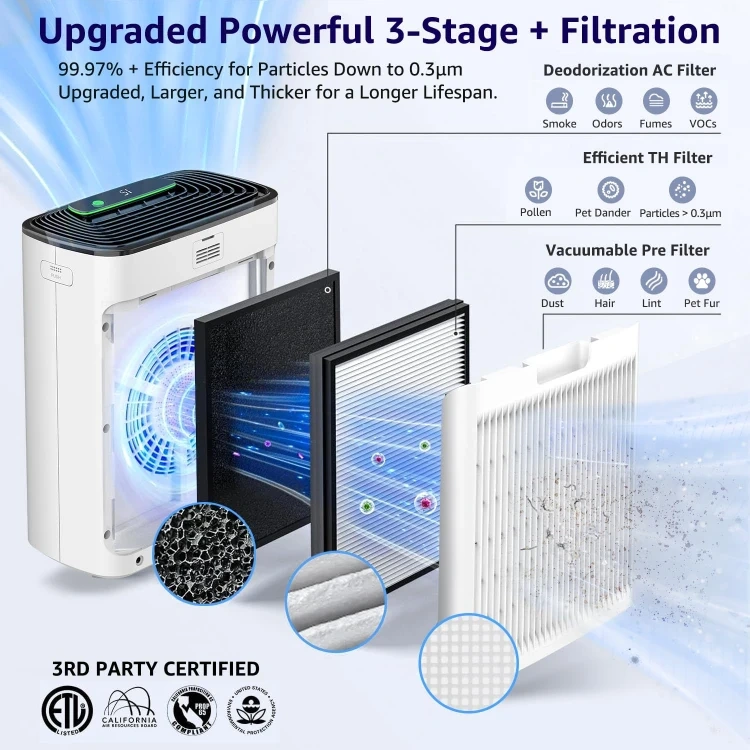 Looking to purify your home? This KNKA air purifier can quickly purify extra-large spaces for a healthier home. - Covers up to 2,325 sq ft - CADR 300 CFM - Upgraded powerful 3-stage filtration 🧡