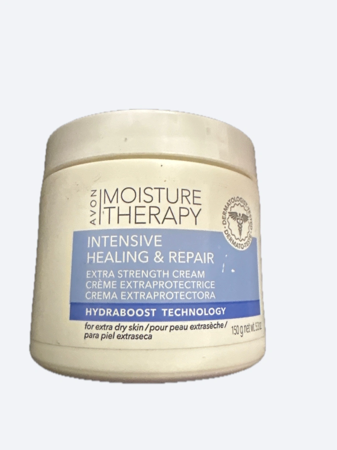 I'm selling an Avon Moisture Therapy Intensive Healing & Repair Extra Strength Cream. It's designed for extra dry skin with Hydraboost Technology. Net weight is 150g.