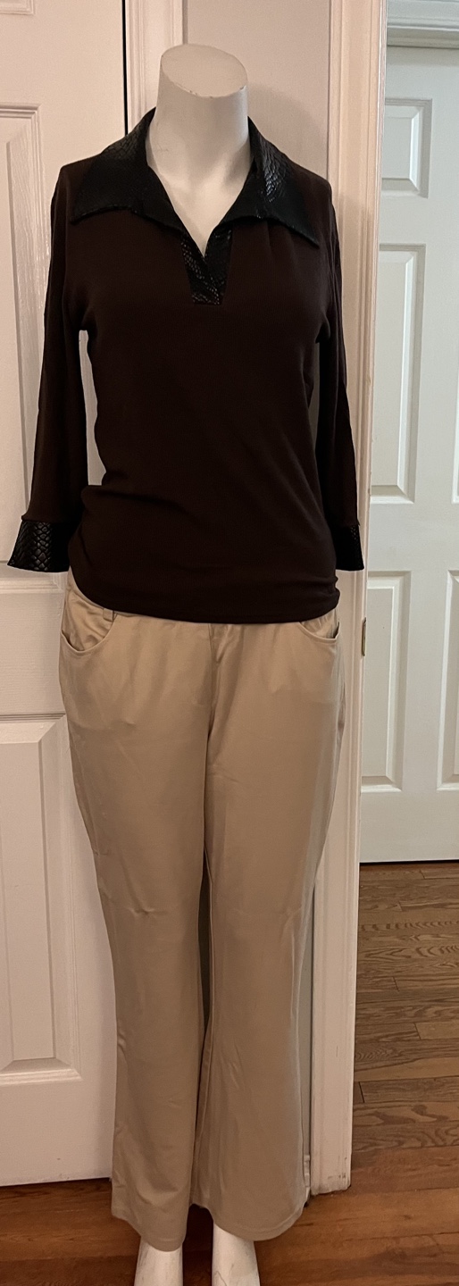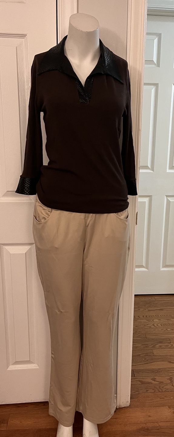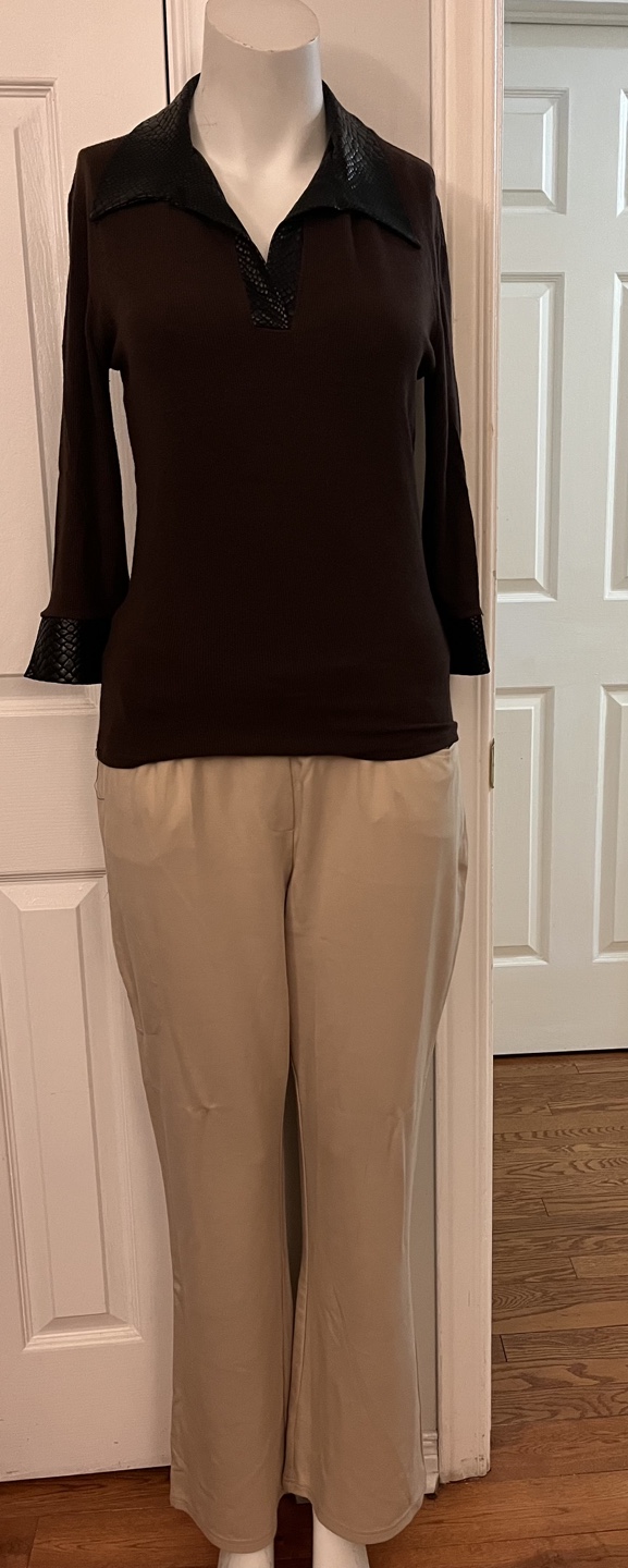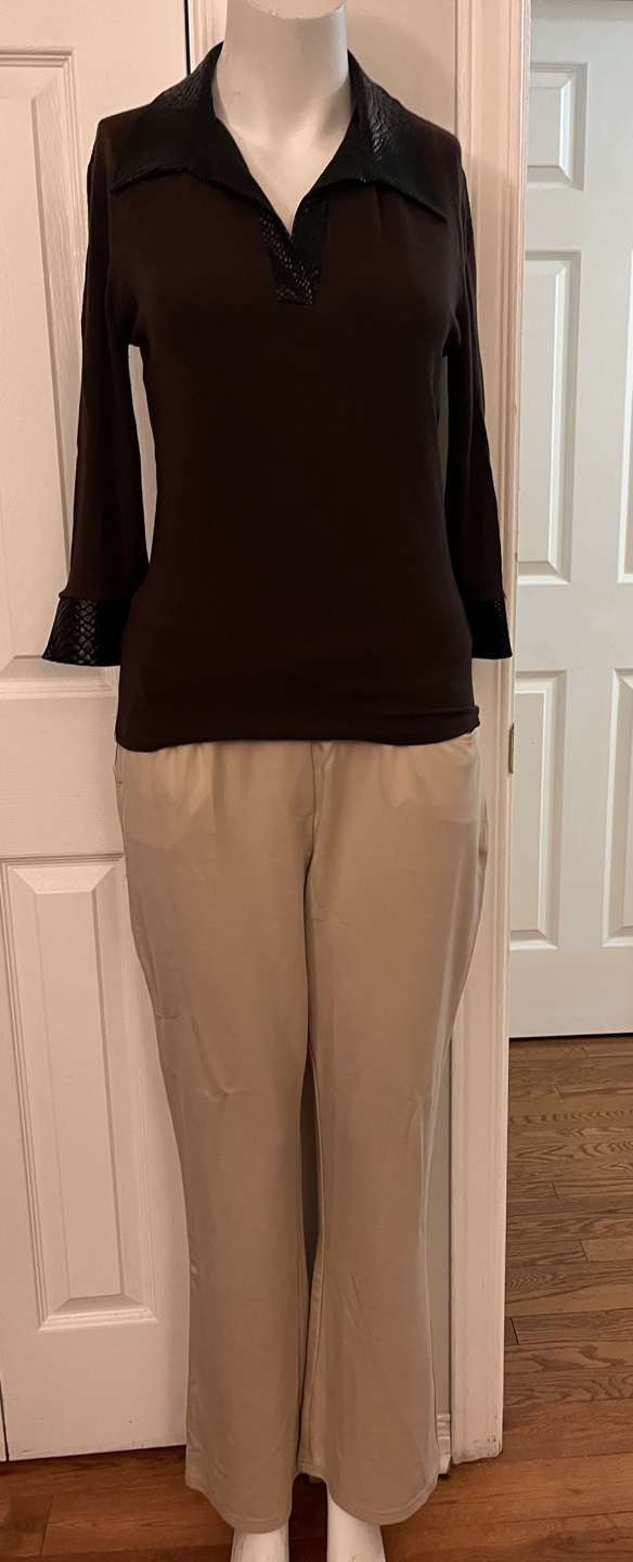 A stylish Sy's Paris top in a rich brown colour! It features a unique design on the collar and cuffs. A great addition to any wardrobe!