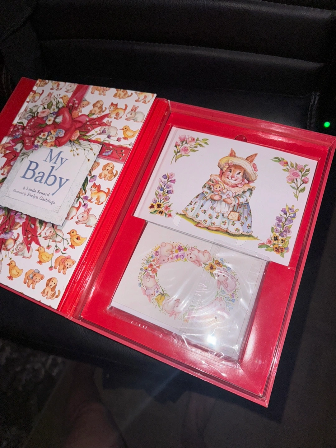 I'm selling The Baby Box keepsake set. It's in excellent condition. It includes: - My Baby book by Linda Seward and Evelyn Gathings - Keepsake cards