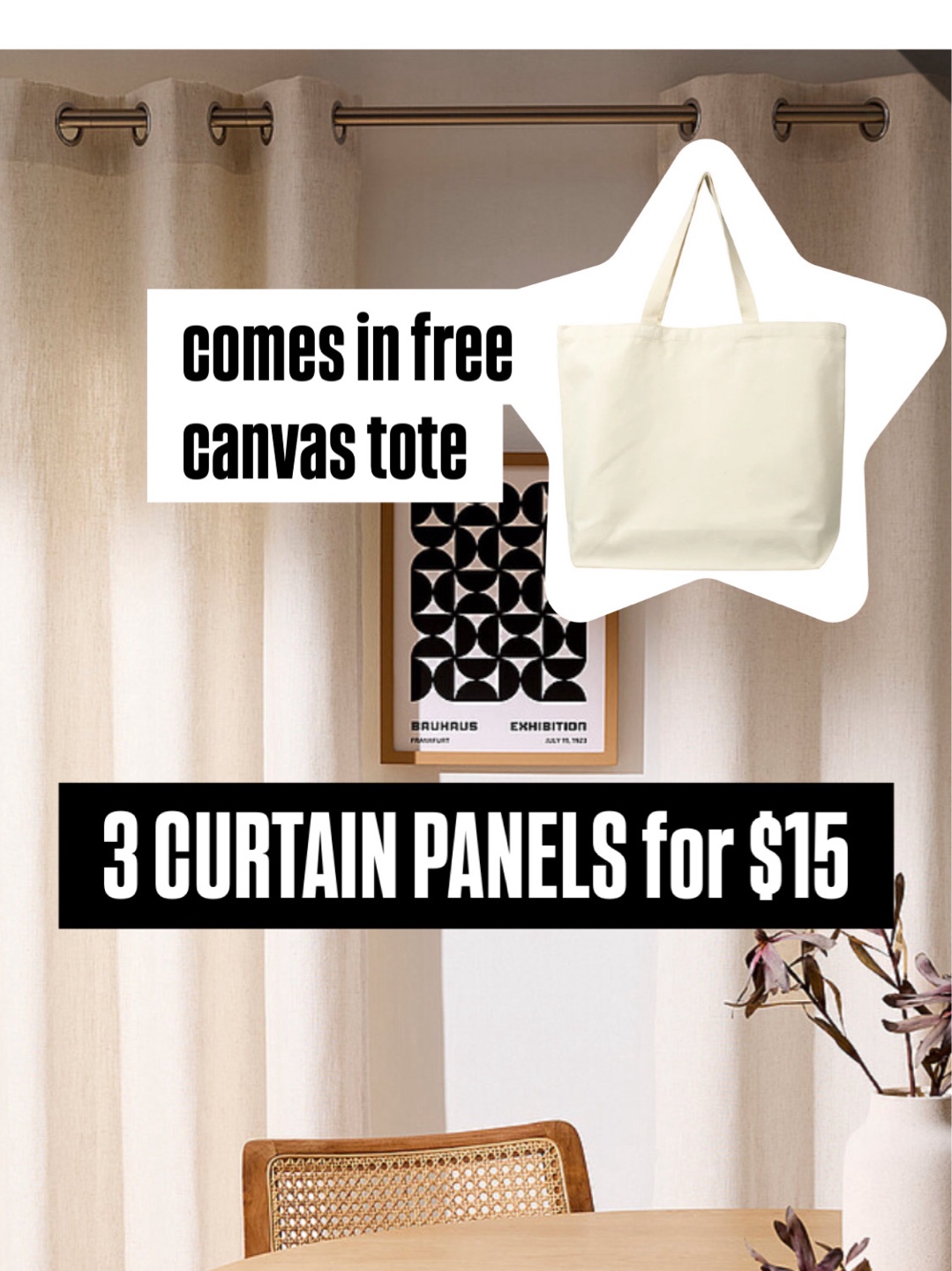 Linen Curtain Panels + Canvas Tote