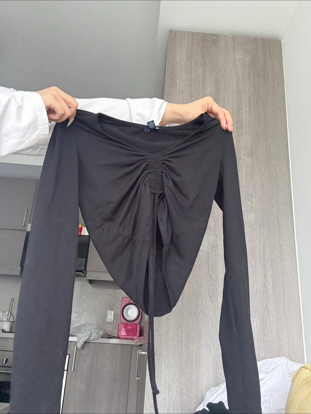 Selling a cute Aerie long sleeve top! It's black and has a stylish cinched front detail. Perfect for adding a touch of flair to any outfit