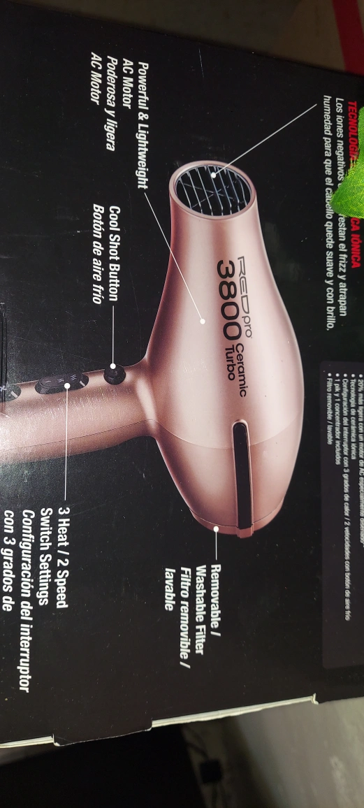 Get ready to style with this RED Pro Ceramic 3800 Turbo hair dryer! It's designed to be powerful and lightweight, with an AC motor for efficient drying. You'll love the cool shot button and the 3 heat/2 speed switch settings. It also features a removable and washable filter for easy maintenance
