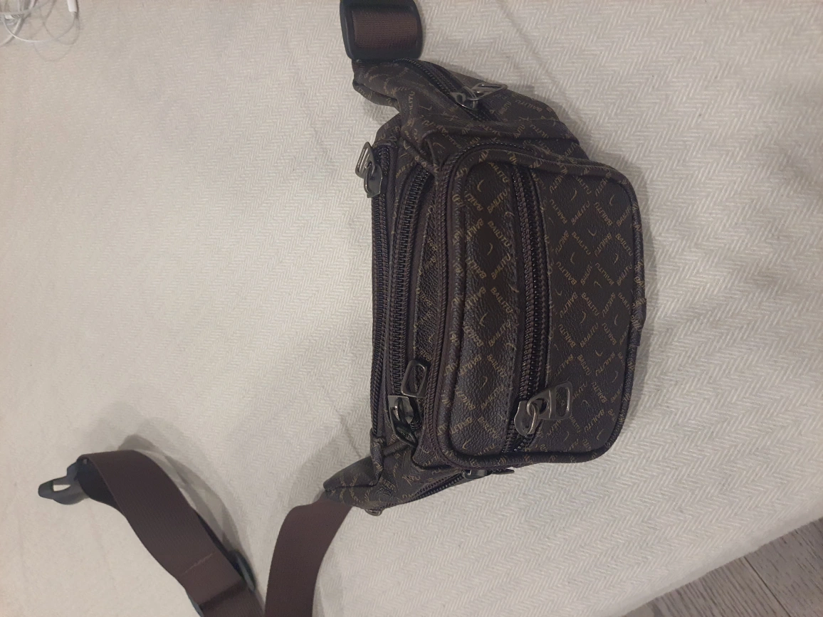 Selling a Bailitu belt bag with a brown patterned design. It has multiple zippered compartments, perfect for keeping your essentials organized while you're on the go🧡