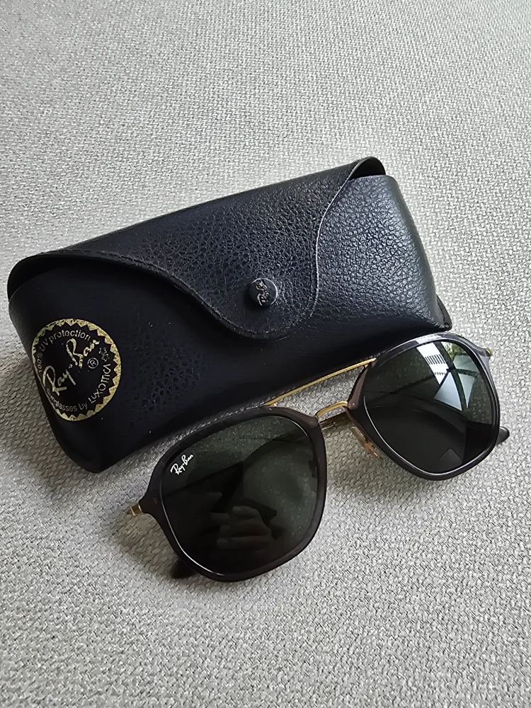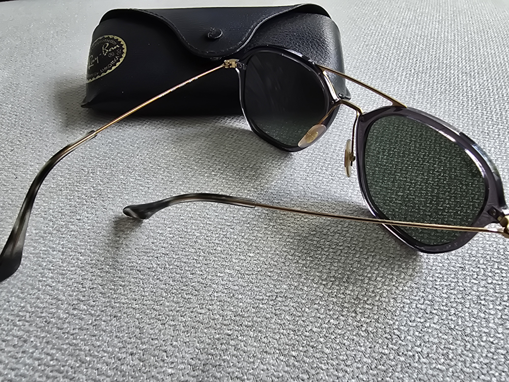 Selling a pair of Ray-Ban sunglasses that are in great condition! They come with their original case for protection. Shiny transparent grey with gold arms RB 4273 6237 52021