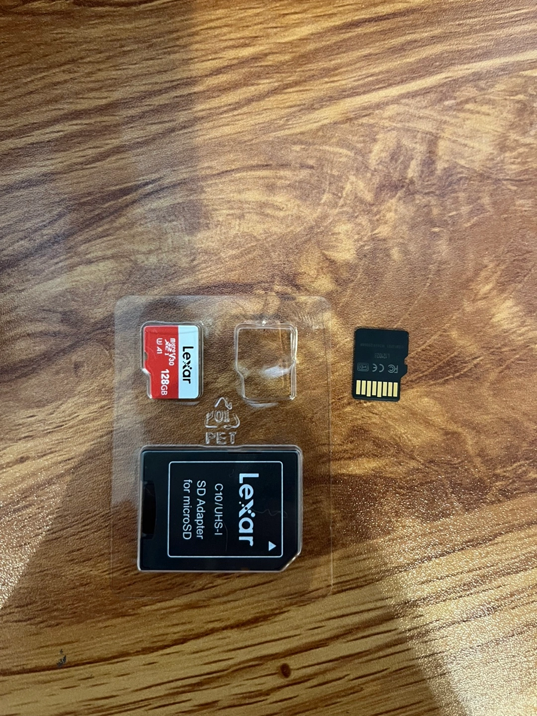 Selling a brand new Lexar Micro SD card with 128GB of storage! It also comes with an SD adapter for microSD cards. Perfect for expanding the storage of your devices! Selling because it is not compatible with my camera, never used before.