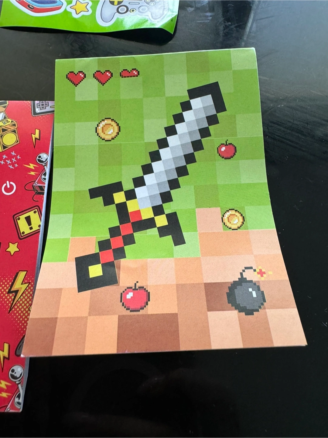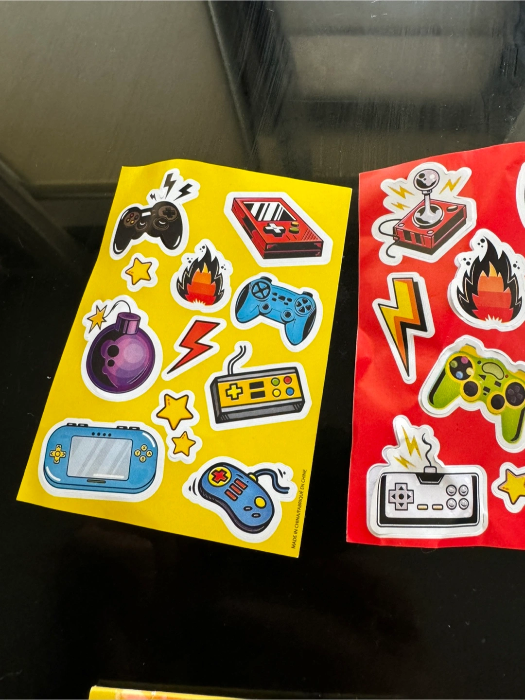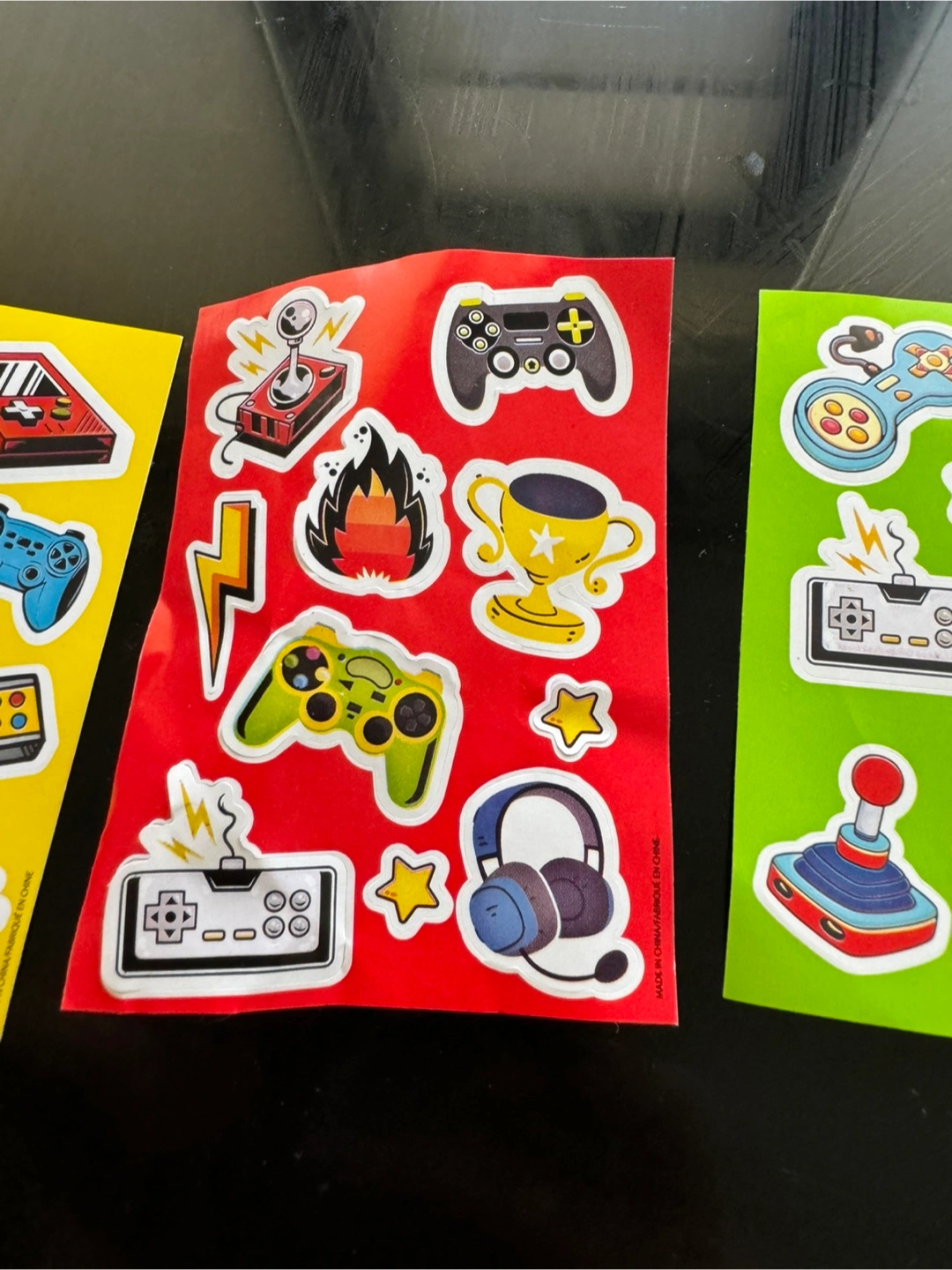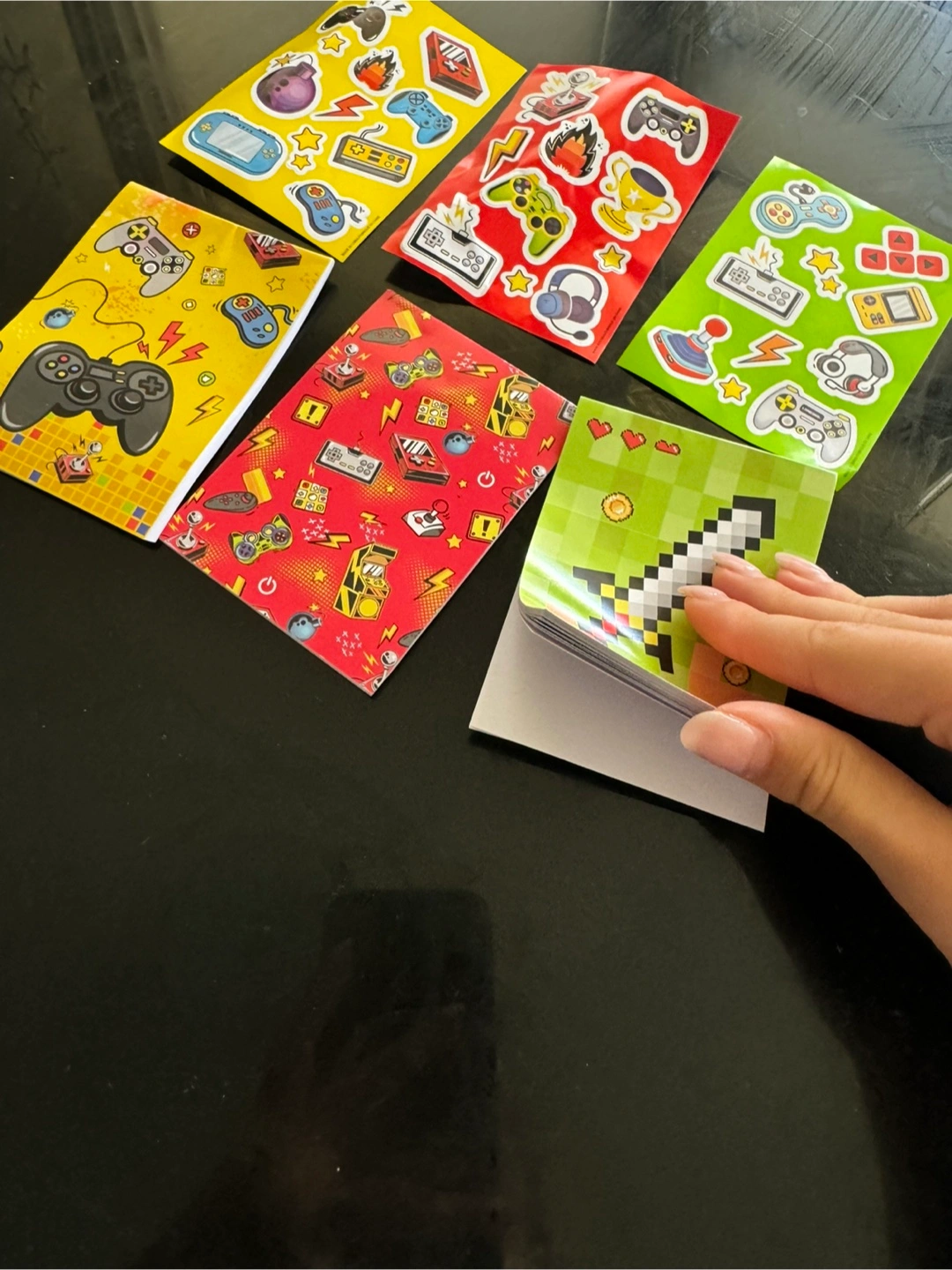 I'm selling a set of 3 cute notebooks with a gaming theme! They're perfect for kids who love video games and are great for school, drawing, or just doodling. Each notebook has a different design featuring controllers, arcade games, and Minecraft elements. Get the whole set for a fun and creative gift! And also 3 pages of stickers