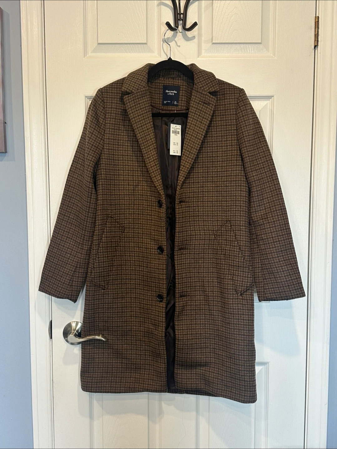 NWT Abercrombie Wool Brown Houndstooth Coat XS