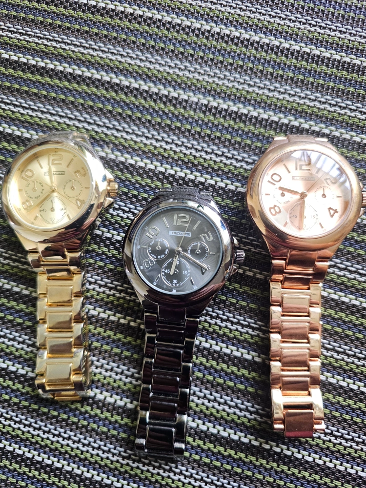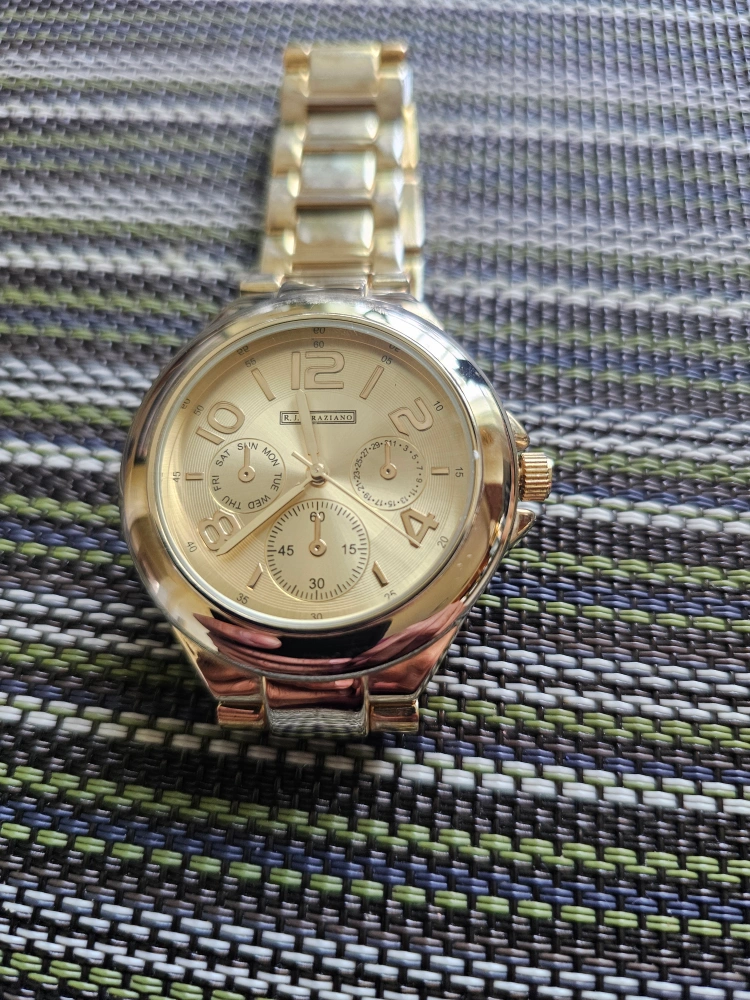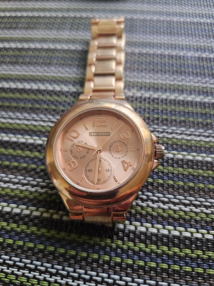 Selling a R.J. Graziano watch with a silver, rose gold and gun mental band. It's in great condition and ready for a new wrist! 1 needs a battery the gun metal 1