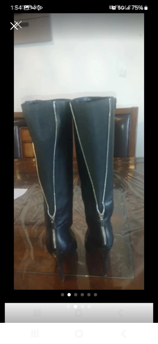 Selling a pair of black knee-high heel boots. They are in good condition and perfect for a night out or adding a bit of flair to your everyday outfit. They have a zipper on the side for easy on and off. Check out the photos for details!