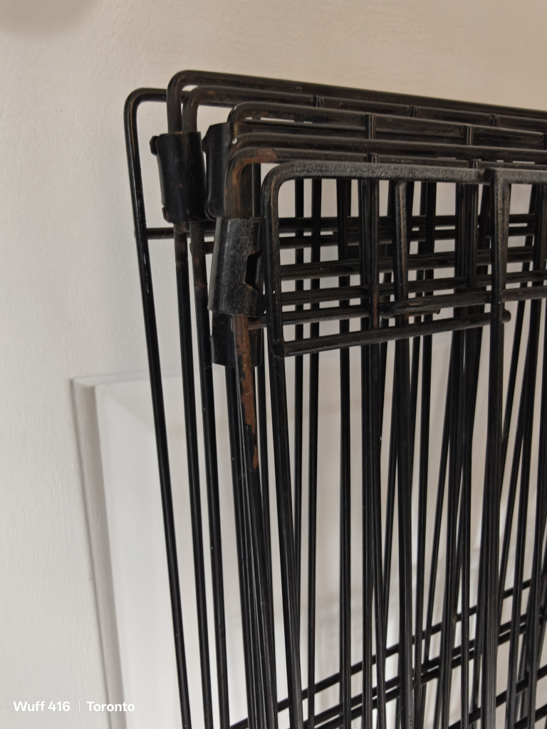 I have a playmate pet pen - used twice and now it is just in storage. Has a small amount of rust where the clasps that hold the panels are. ( please see photos)