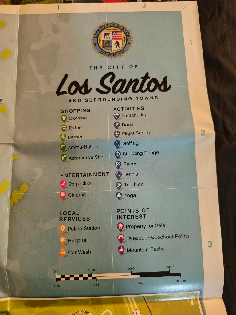 Selling a detailed map of Grand theft Auto los Santos Blaine County. It shows all the key locations, including shopping areas, activities, entertainment spots, local services, and points of interest. A must-have for any fan! great condition