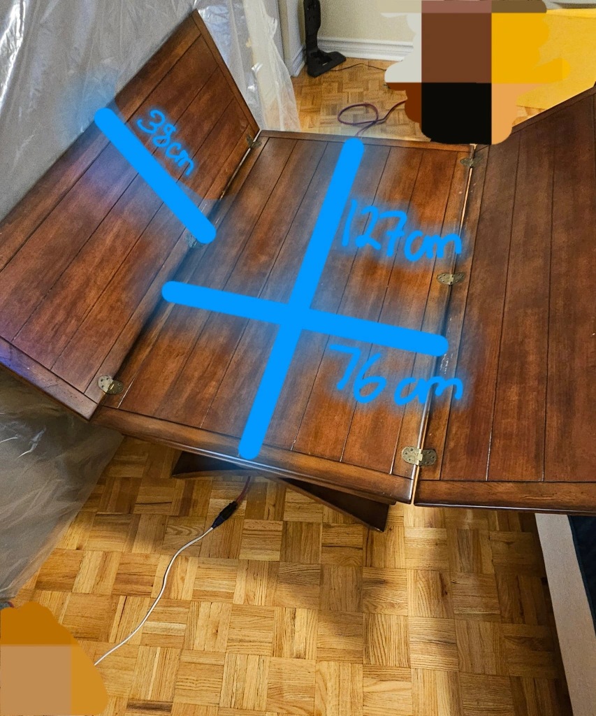 Selling a lovely expanding coffee table! It's made of wood and has a beautiful finish. Great gor board games or dinners with family! Dimensions when not expanded are approximately 127cm x 76cm. The expanded width is 152 cm. New one costs $300.
