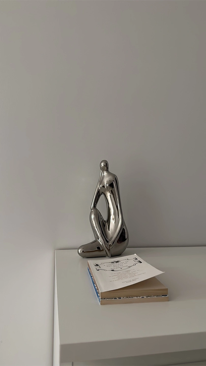 335Here's a lovely silver metal sculpture! It's in great condition and would look great as a decorative piece in any room of the house