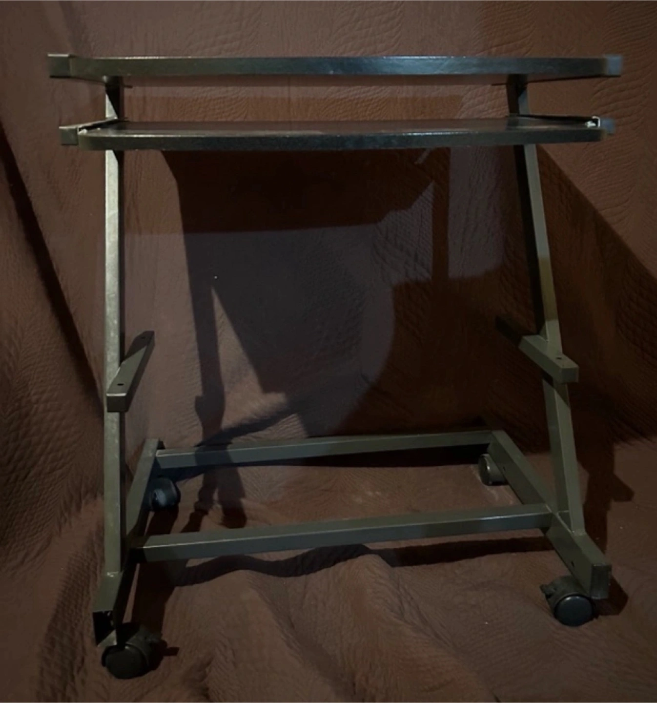 Selling a rolling computer desk workstation! It's perfect for small spaces and easy to move around. The dimensions are approximately 18.9 inches by 23.6 inches, and it stands about 28.7 inches tall. Great for a home office or workstation setup!