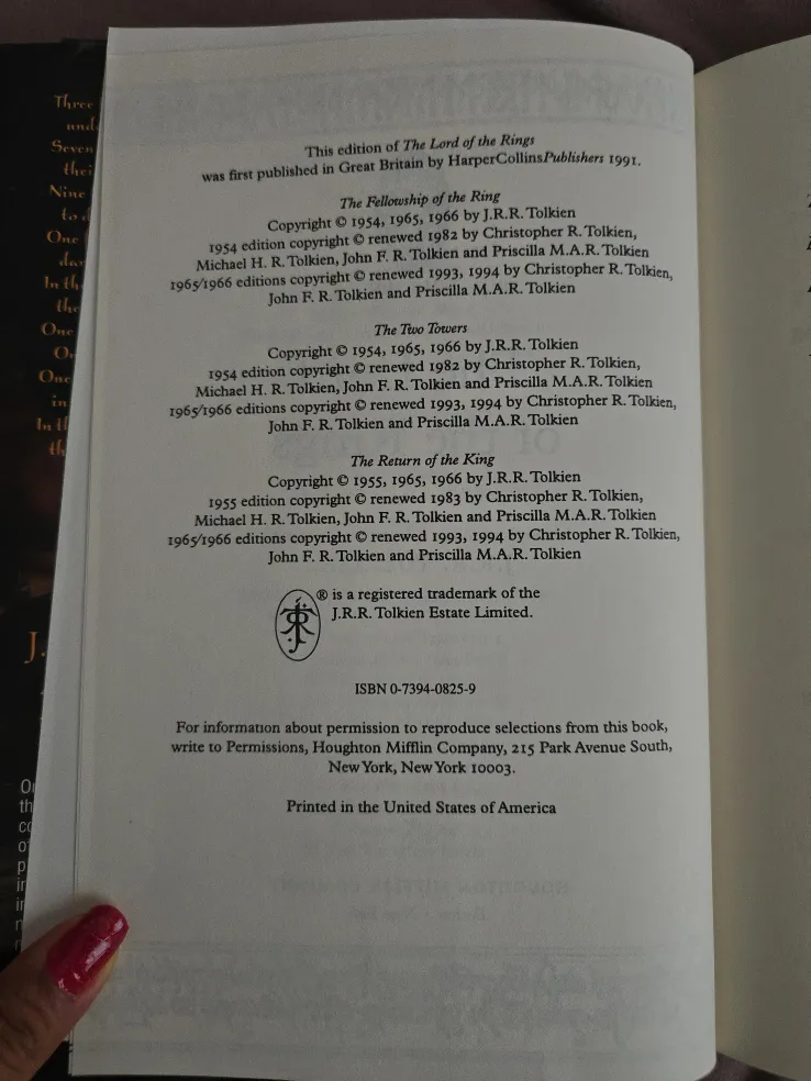 - The Fellowship of the Ring (copyright 1954, 1965, 1966, renewed 1982)