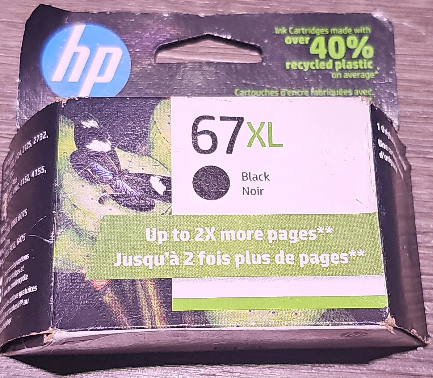 Selling a HP 67XL black ink cartridge. It's made with over 40% recycled plastic, on average, which is pretty neat! It also prints up to 2X more pages. Perfect if you need a reliable black ink cartridge for your HP printer