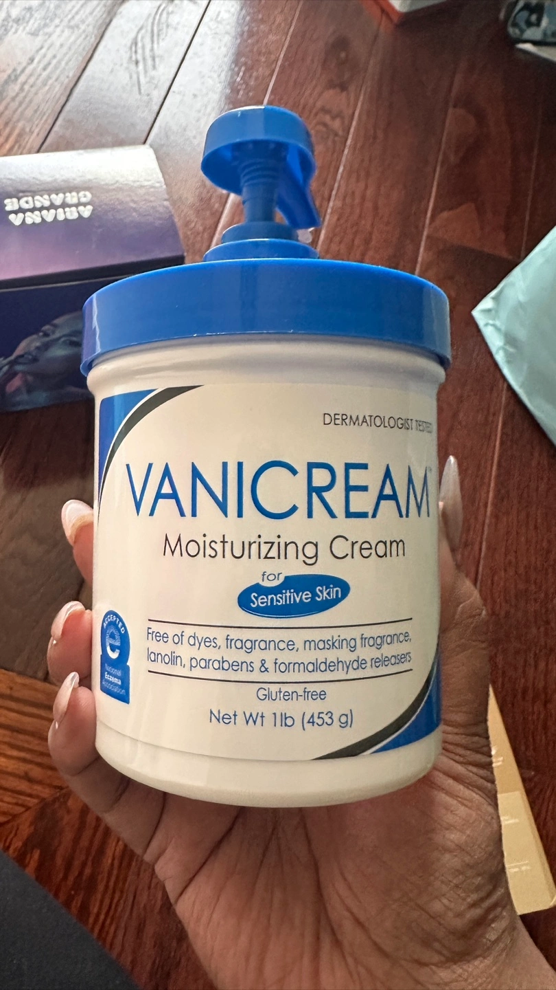 I'm selling a tub of Vanicream Moisturizing Cream, perfect for sensitive skin! It's dermatologist tested and free of dyes, fragrance, masking fragrance, lanolin, parabens, and formaldehyde releasers. The net weight is 1 lb (453 g). It's designed for dry, irritated, or sensitive skin, and gentle enough for the whole family