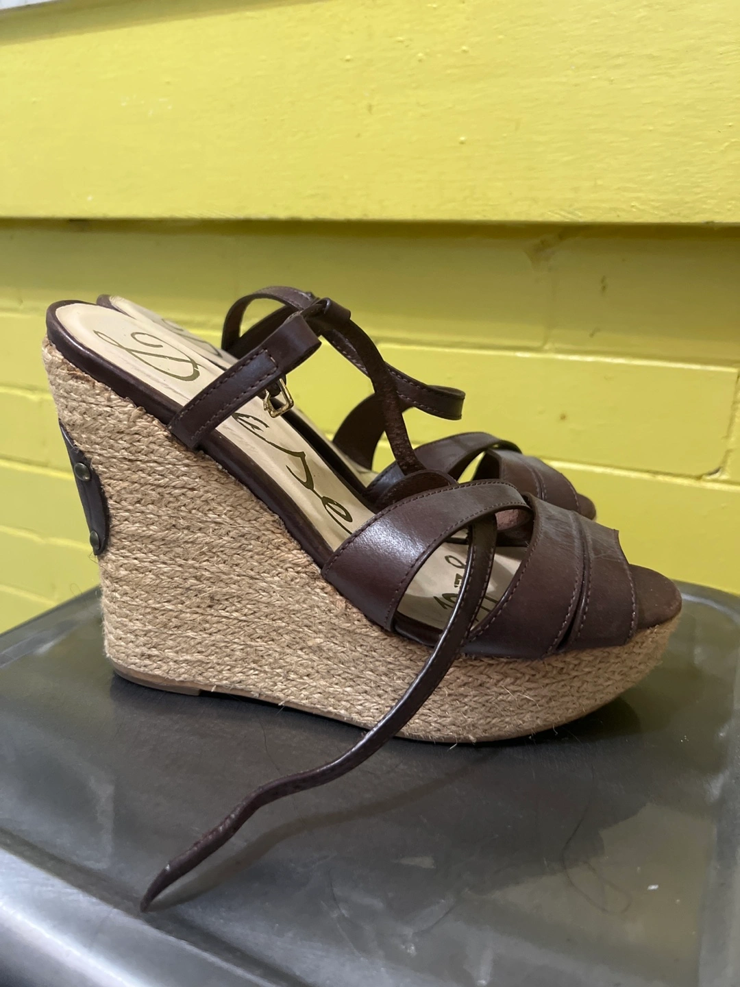 Check out these Diesel wedge sandals! They feature a brown leather upper with a woven wedge heel. Great for adding a bit of height and style to your summer outfits 8