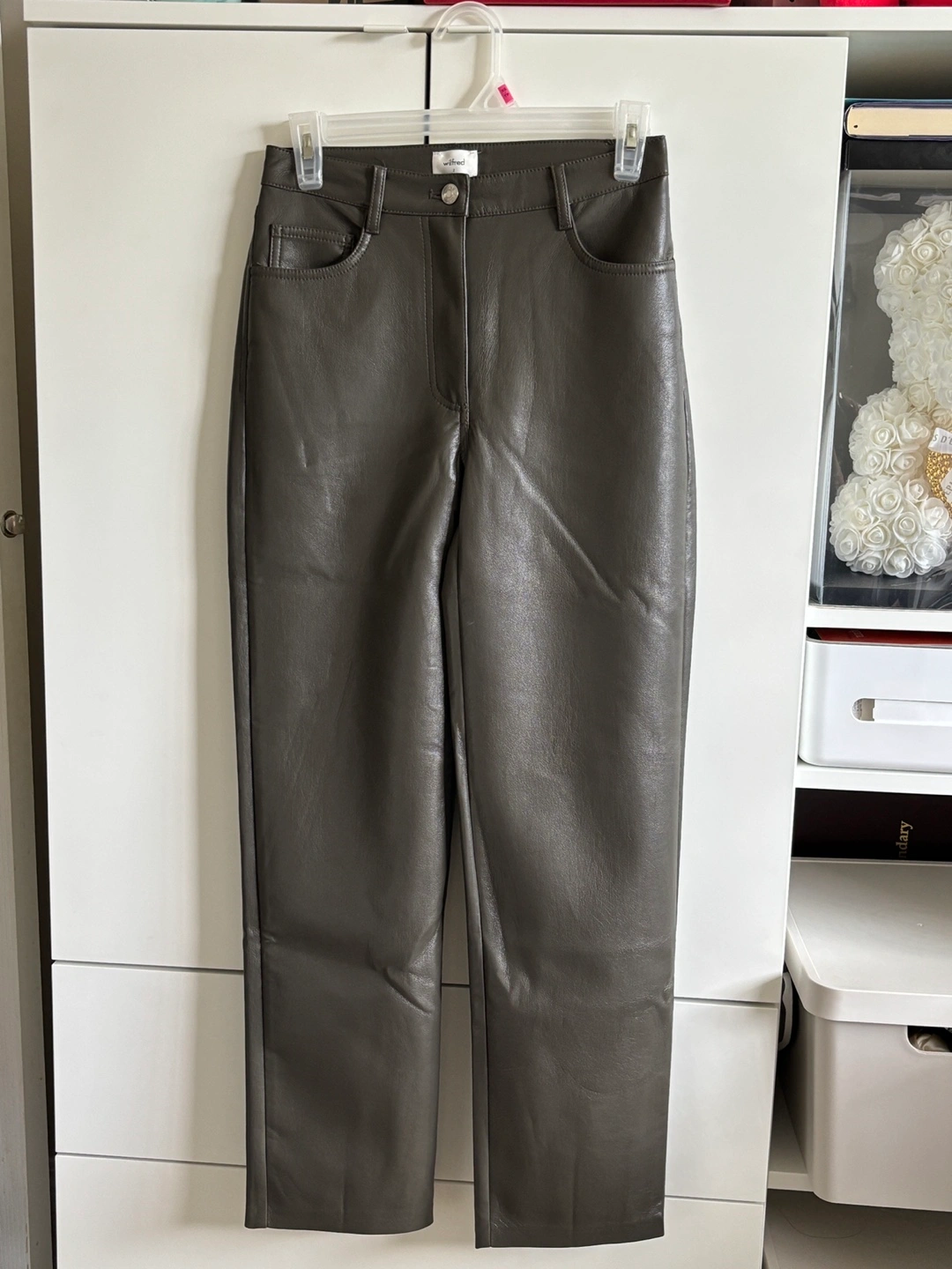 Selling a pair of dark taupe Wilfred vegan leather pants in size 2. They're in great condition and have a stylish look! Perfect for adding a touch of edge to your wardrobe