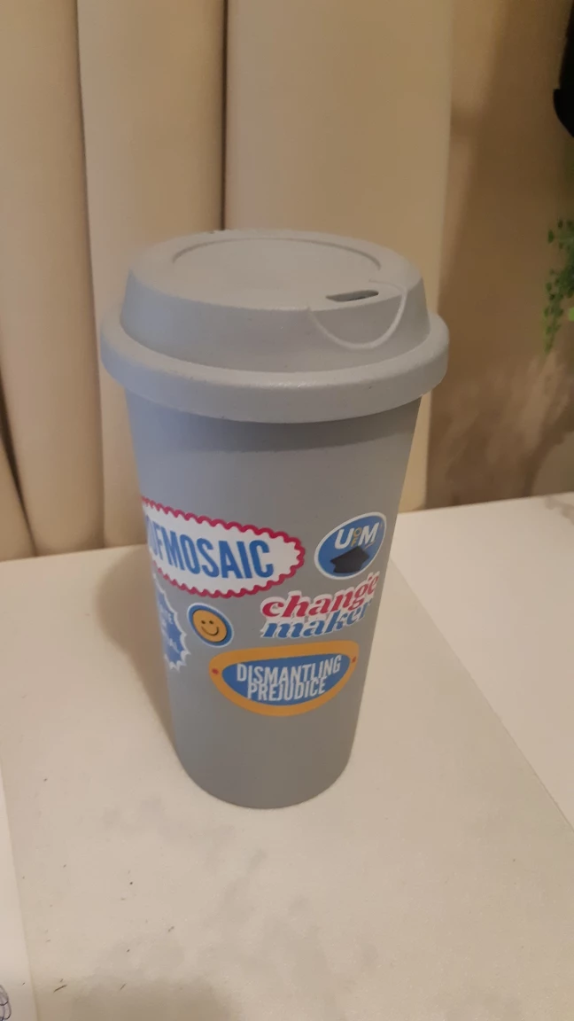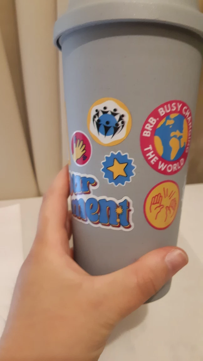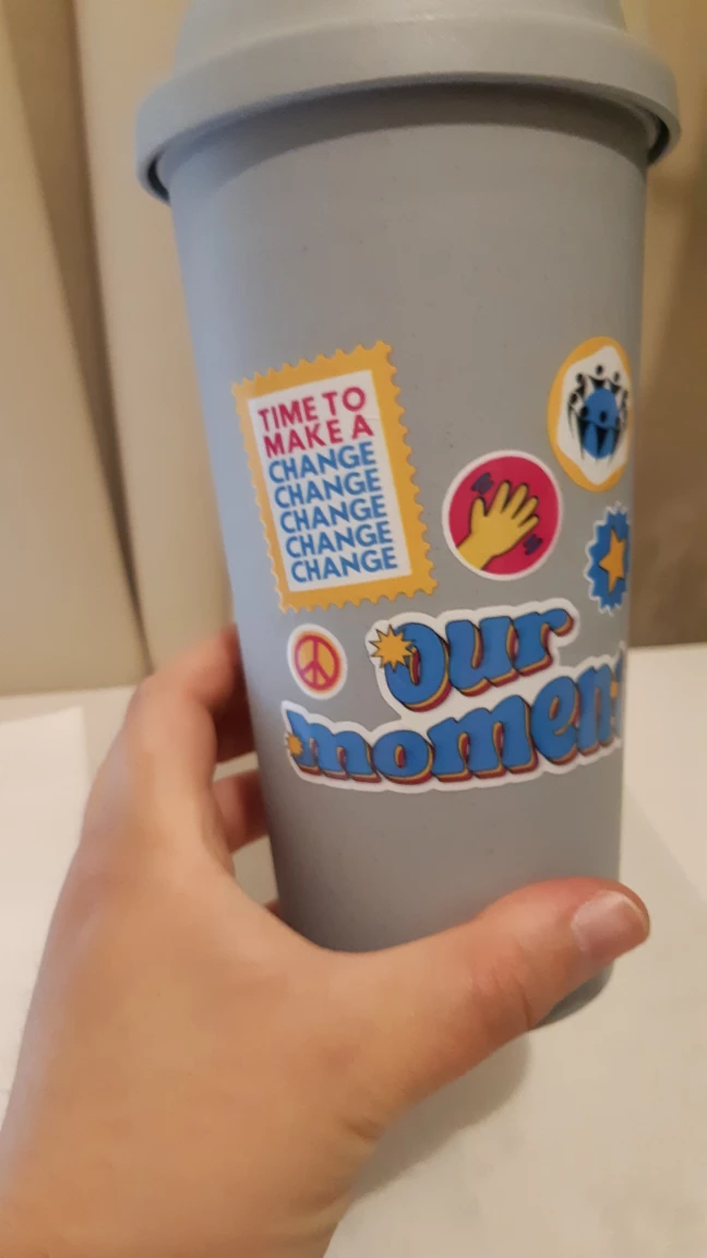 BPA free plastic, ~700ml. Cold and hot insulated. Never used. Show your social justice warrior side! Printed, not stickers.