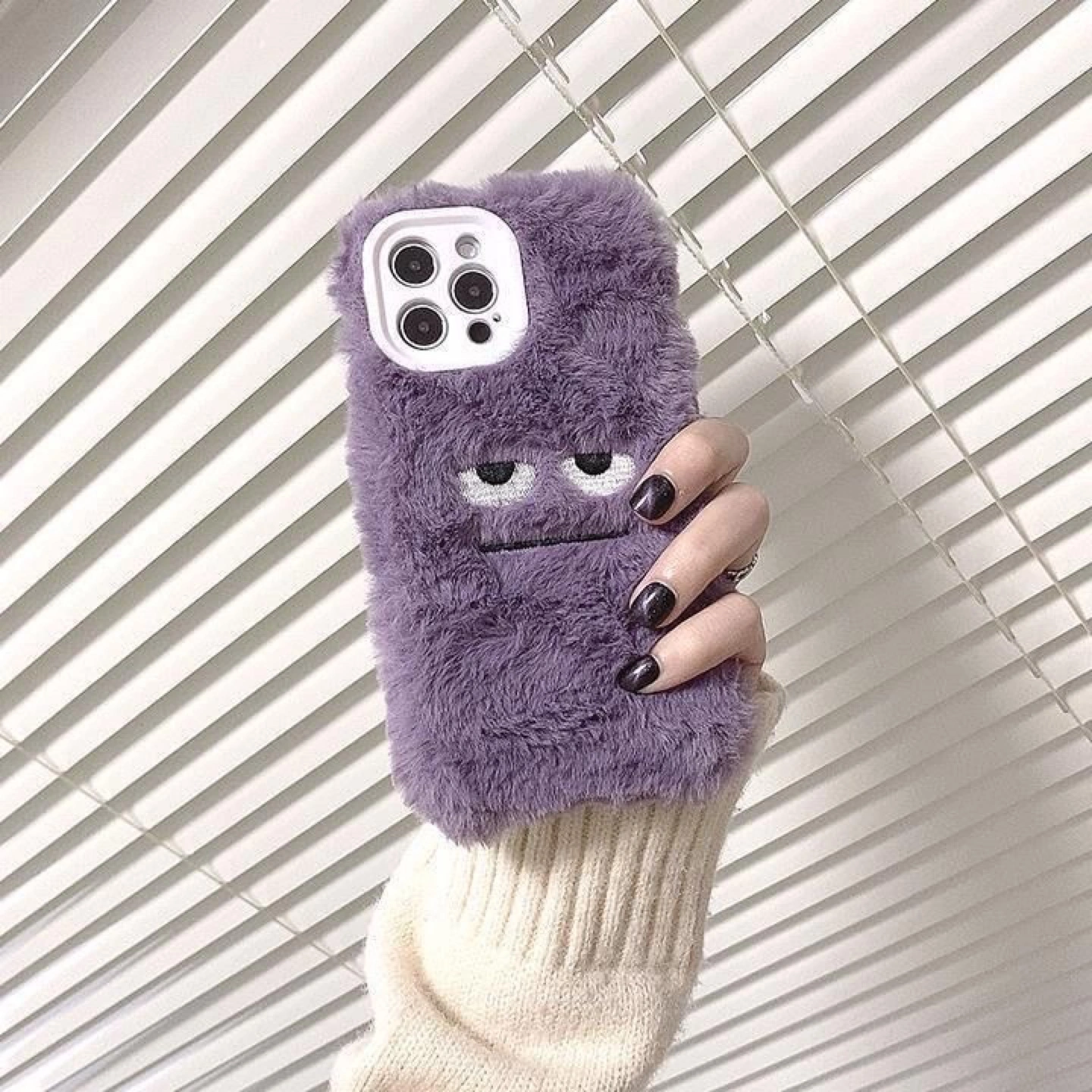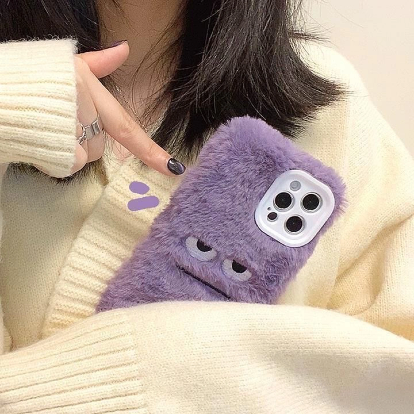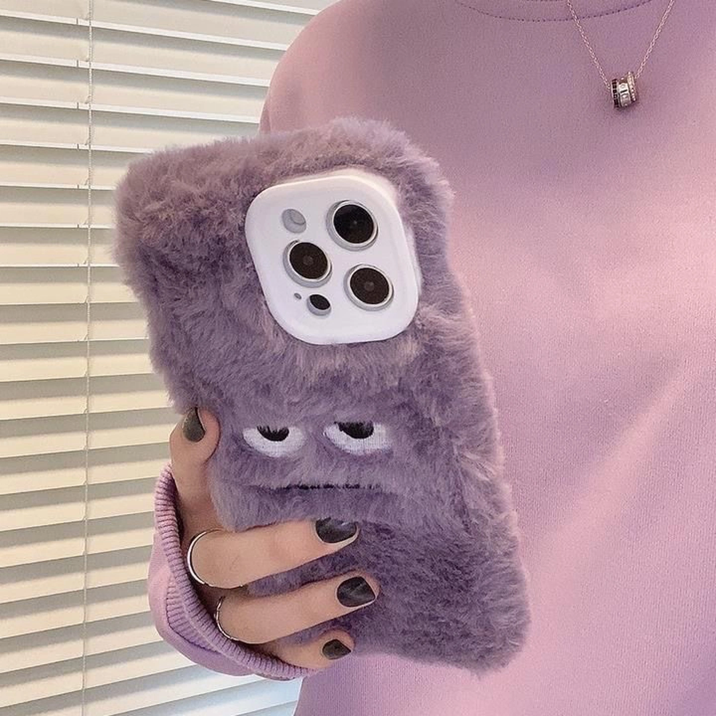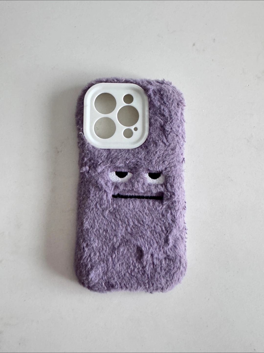 Check out this adorable purple plush iPhone case! It's super soft and fuzzy, and the little face on it is just too cute. iPhone 15 Pro iPhone 15 pro