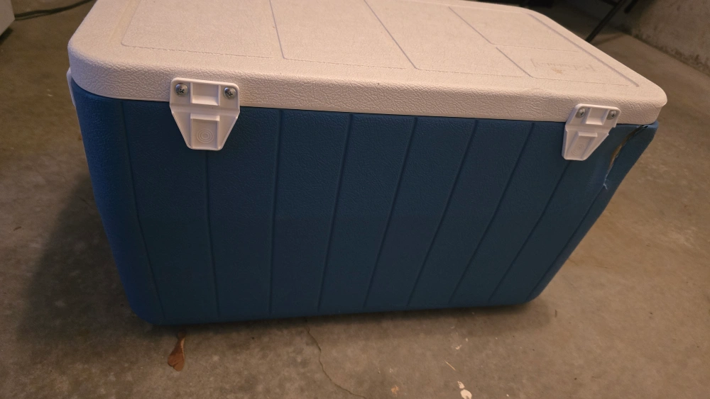 Selling a Coleman Chiller cooler, perfect for keeping your drinks and snacks cold! It's a 48-quart size, so it's great for picnics, camping, or any outdoor adventure. There is a crack on the side, but it is still fully functional.