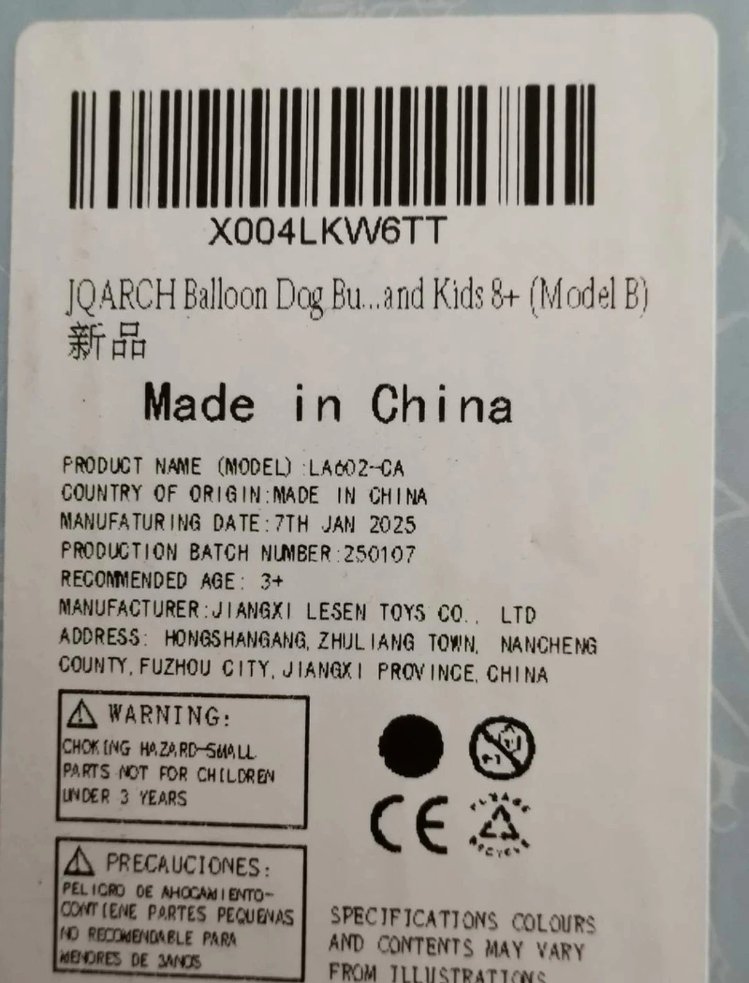 712Selling a Chao Le Sen Balloon Dog Building Blocks set! The box indicates it's suitable for ages 14+. The product name (model) is LA602-CA and the manufacturing date is 2025 January 07. Happy building!